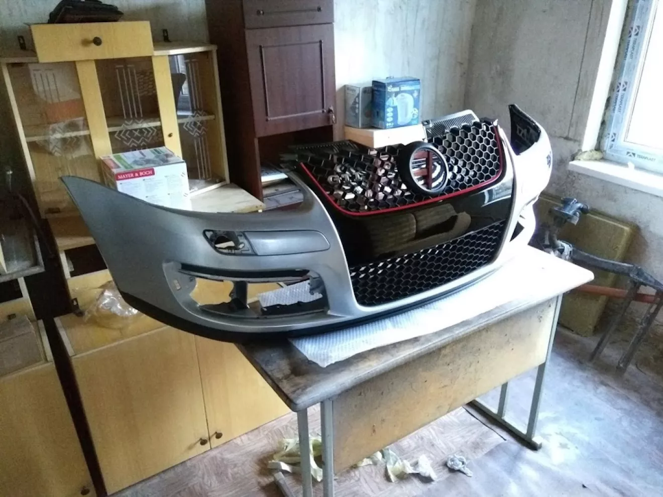 Так же ранее были куплены пороги и передний бампер от GTI которые были покрашены до наступления холодов