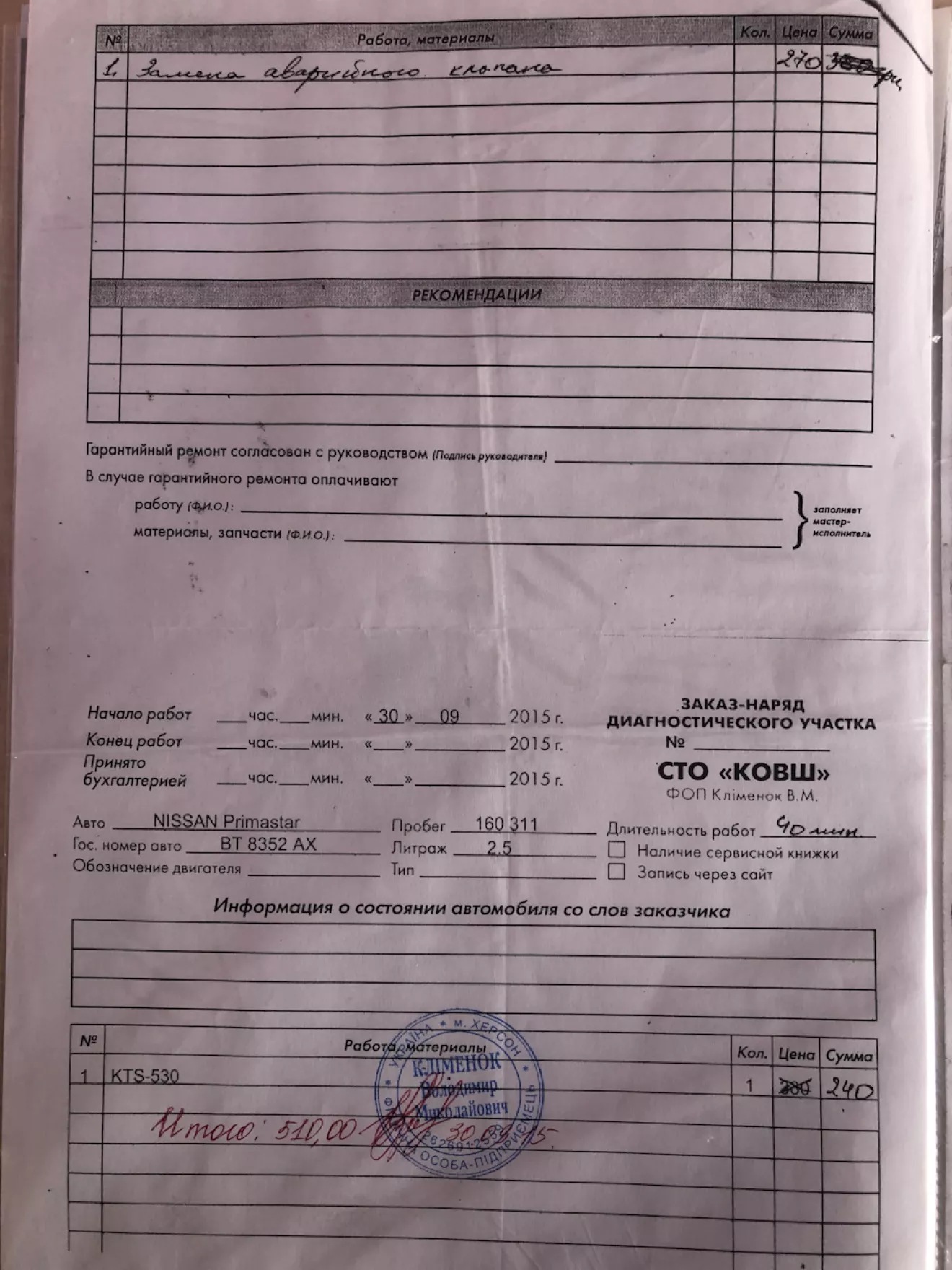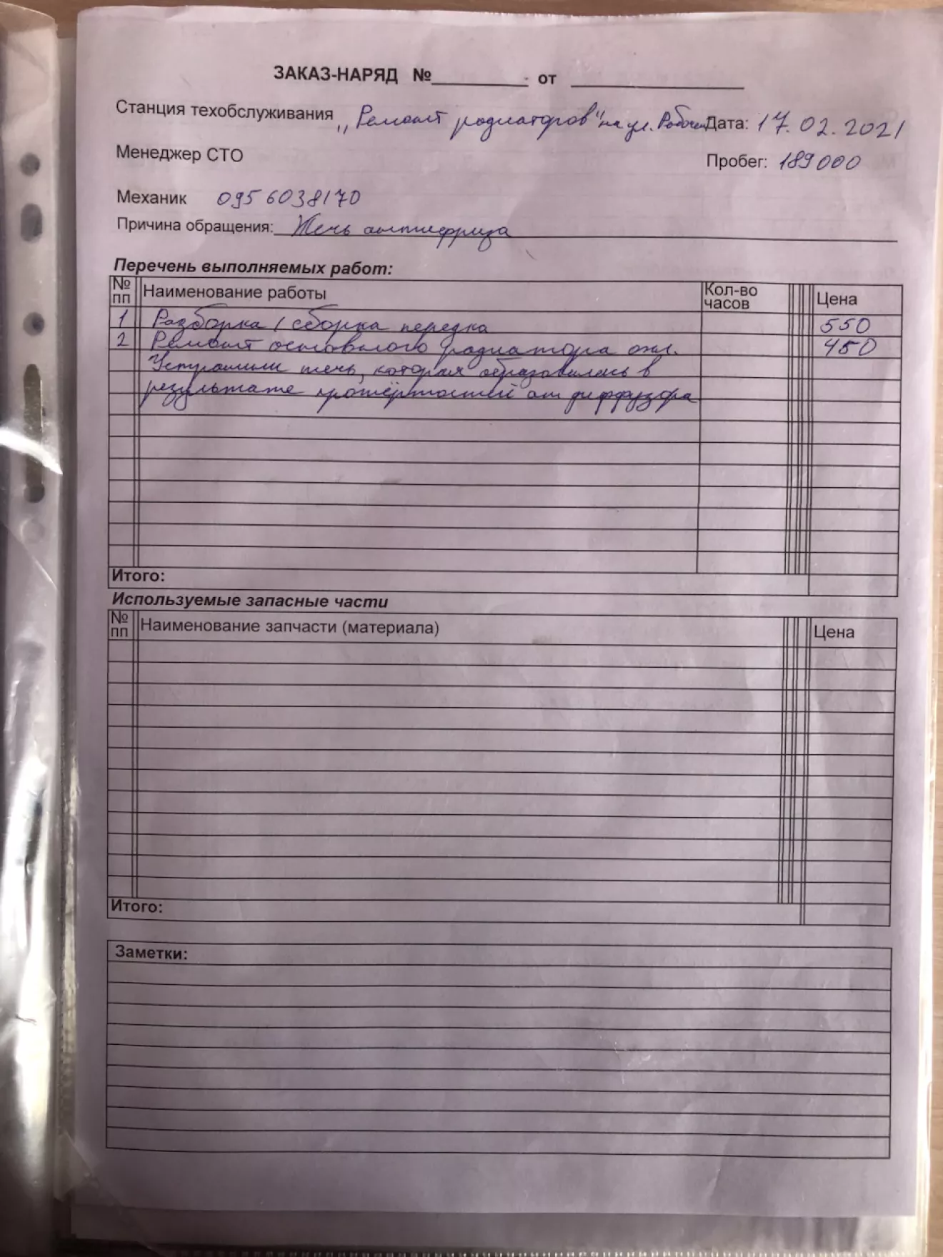 Запись сделана для хранения всех чеков и документов. Будет что-то вроде сервисной книги, а сами ремонты буду стараться описывать отдельно.