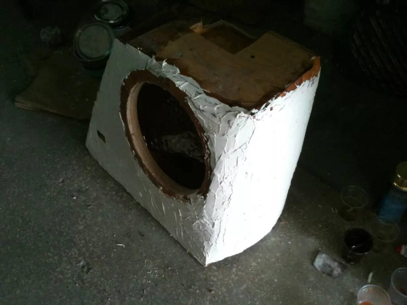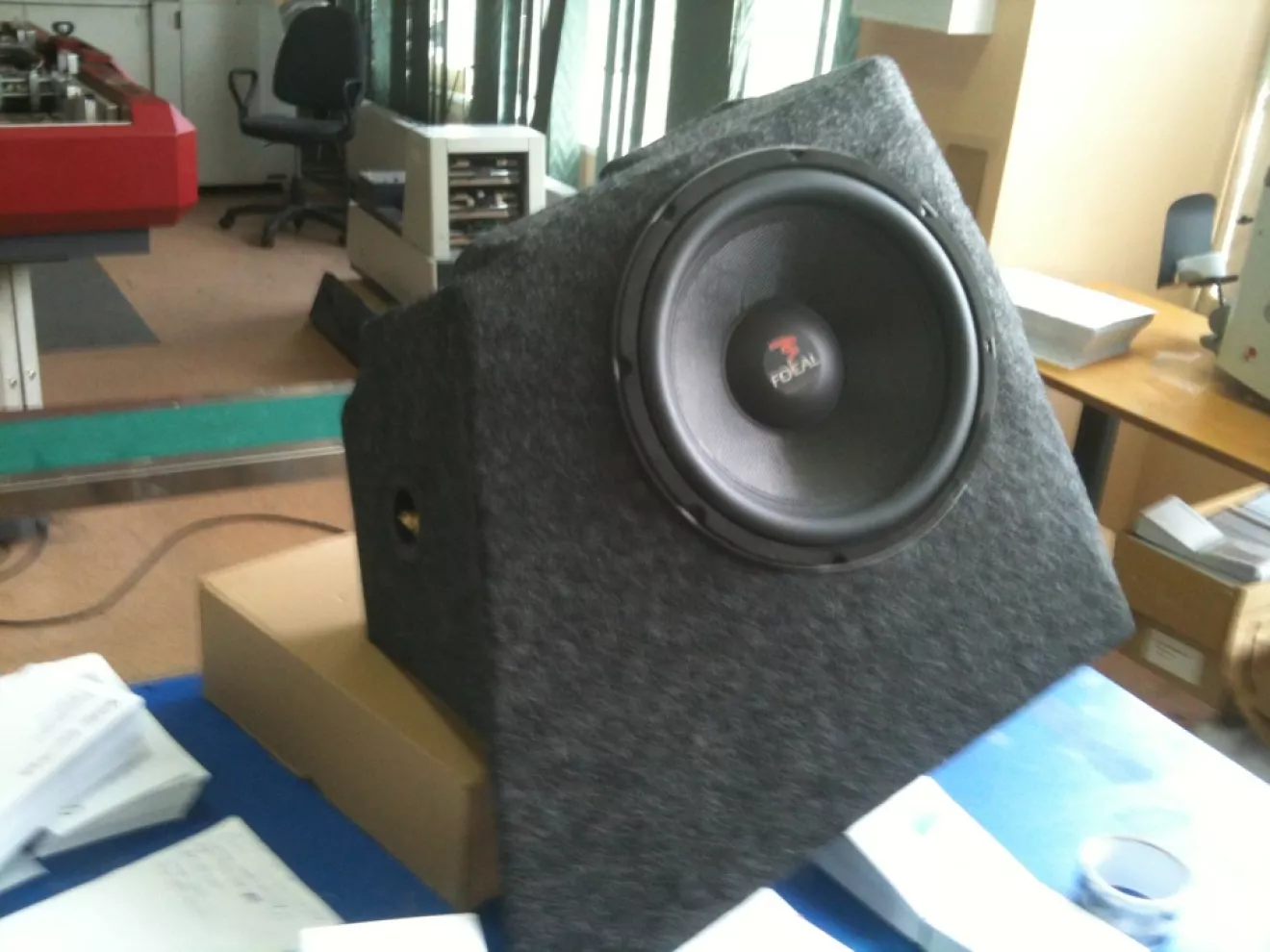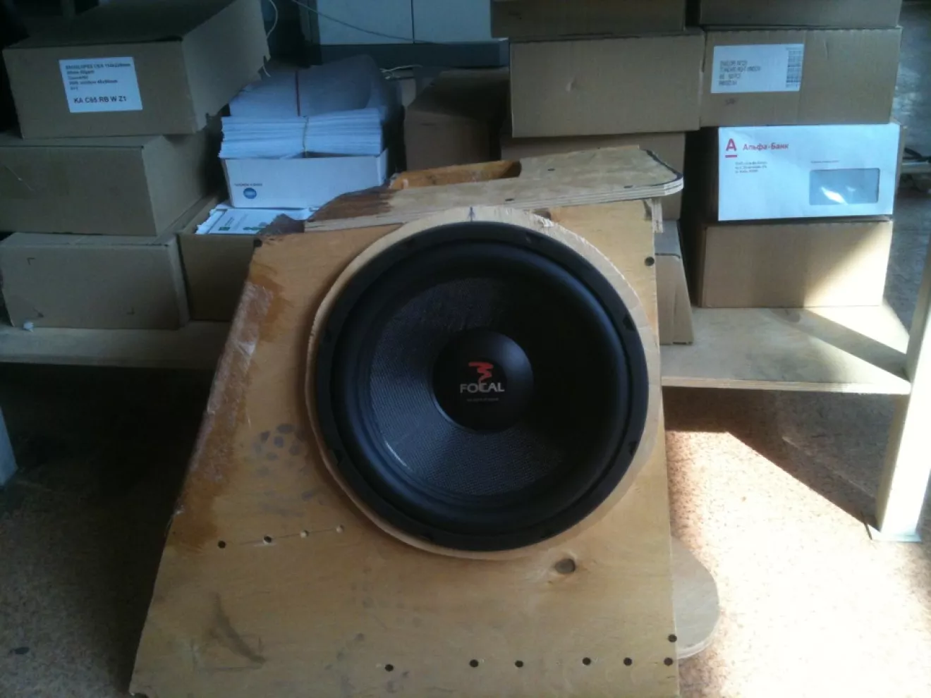 Сначала были вырезаны трафаретки из картона и перенесены на фанеру, скручено между собой и сразу же возникла проблемка в том плане что мешала заливная горловина. но эпоксидка и стекловолокно творят чудеса и я все же вытянул заднюю стенку над горловину так же были сделаны вырезы под полку которая упорно сопротивлялась на открывание подклинивая на корпусе. Вроде как бы корпус готов и можно было обшить карпетом и поставить! но нет захотелось сделать его немного дутым! Снова эпоксидка, стыренные колготки у жены, и конечно шпаклевка помогли сделать то что хотелось! в итоге смотрите что получилось и сильно не пинайте! будут вноситься некоторые доработки немножко позже!