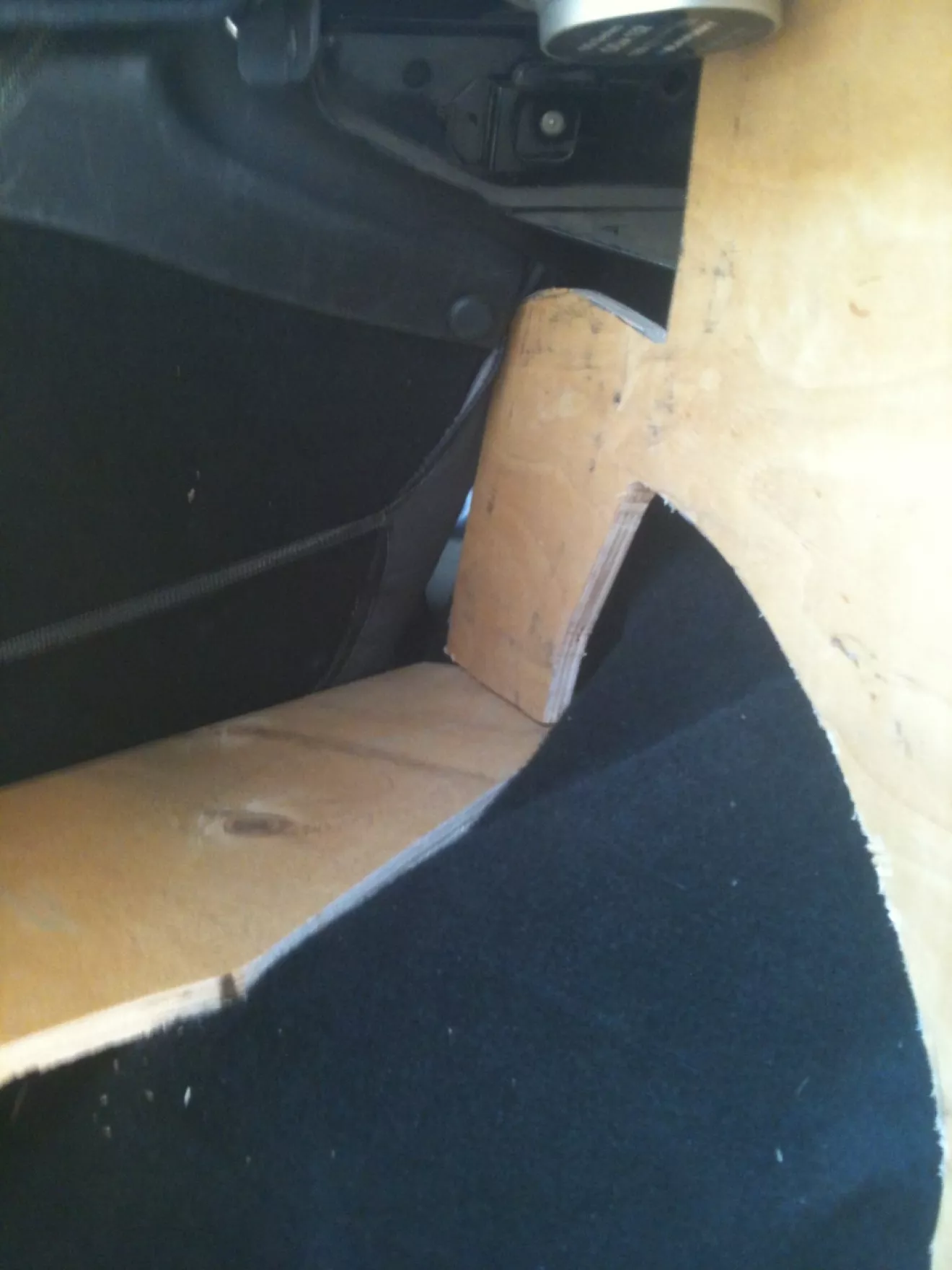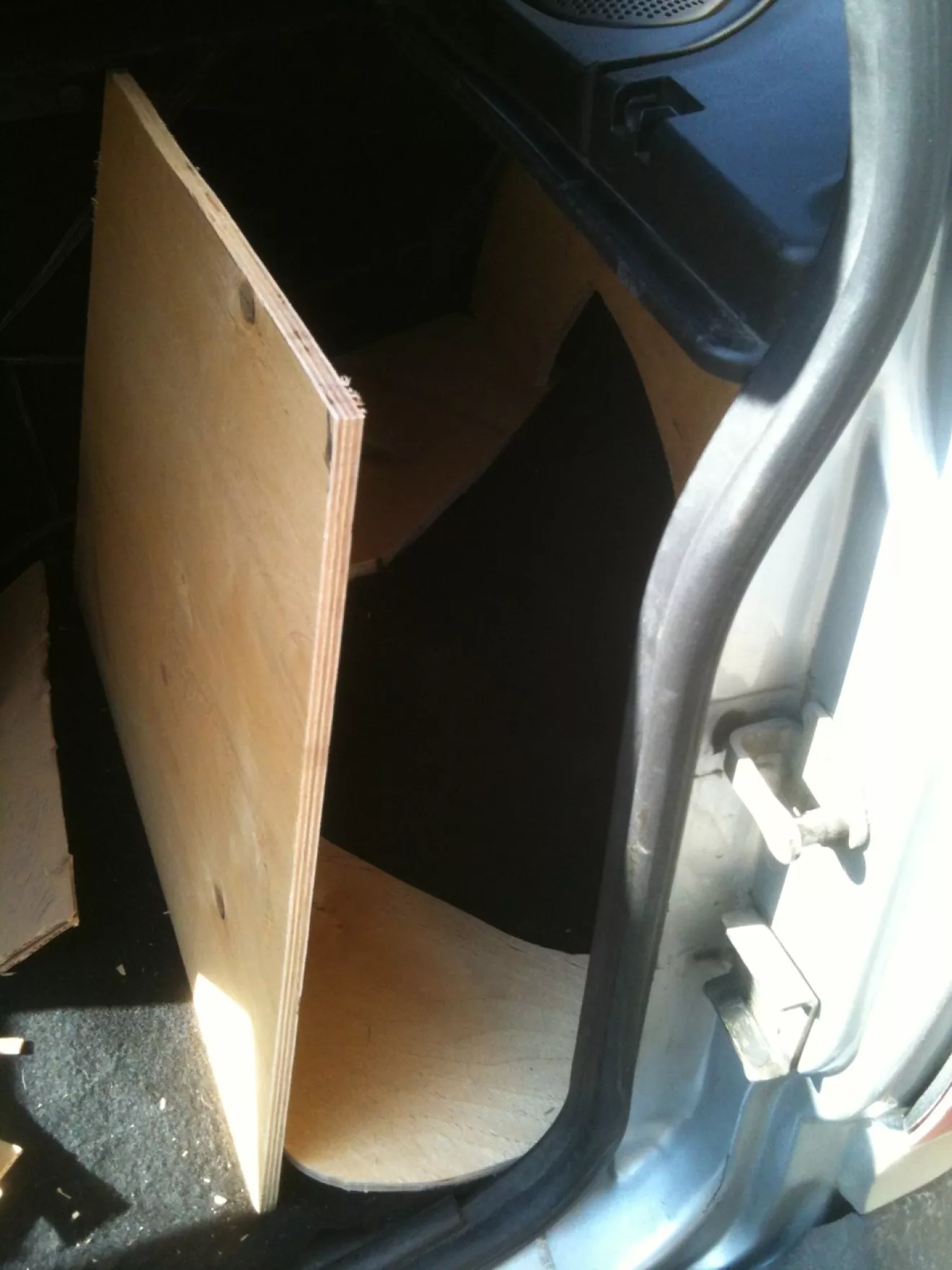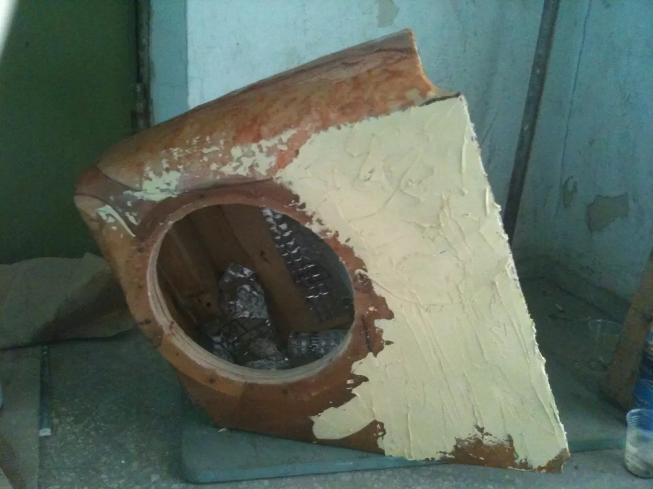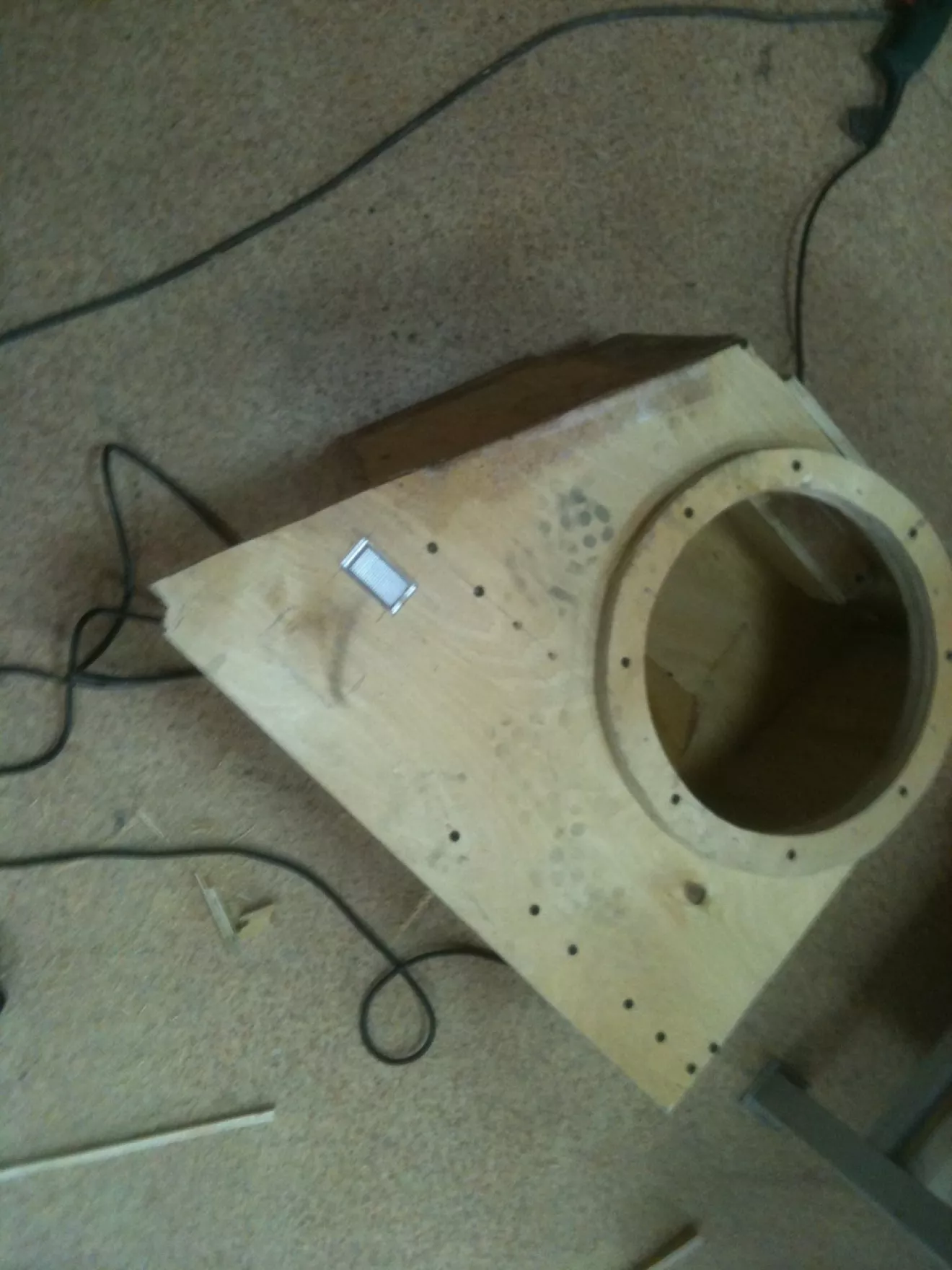 Сначала были вырезаны трафаретки из картона и перенесены на фанеру, скручено между собой и сразу же возникла проблемка в том плане что мешала заливная горловина. но эпоксидка и стекловолокно творят чудеса и я все же вытянул заднюю стенку над горловину так же были сделаны вырезы под полку которая упорно сопротивлялась на открывание подклинивая на корпусе. Вроде как бы корпус готов и можно было обшить карпетом и поставить! но нет захотелось сделать его немного дутым! Снова эпоксидка, стыренные колготки у жены, и конечно шпаклевка помогли сделать то что хотелось! в итоге смотрите что получилось и сильно не пинайте! будут вноситься некоторые доработки немножко позже!