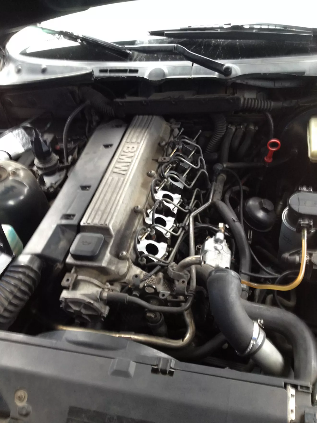 По технологии замена прокладок производится на снятом ТНВД и меняются они в комплексе, так как если заменить только 1-2 текущих уплотнения — то через время соляра найдет другое место в старых прокладках, а также после ревизии насоса нужно его калибровать на стенде. Однако для ускорения и удешевления процесса я уговорил товарища поменять только верхние потеющие прокладки без снятия насоса. Данную операцию на BMW с двигателем TDS (е34 525, е36 325, е38 725 е39 525) можно проделать без снятия насоса, сняв лишь впускной коллектор.