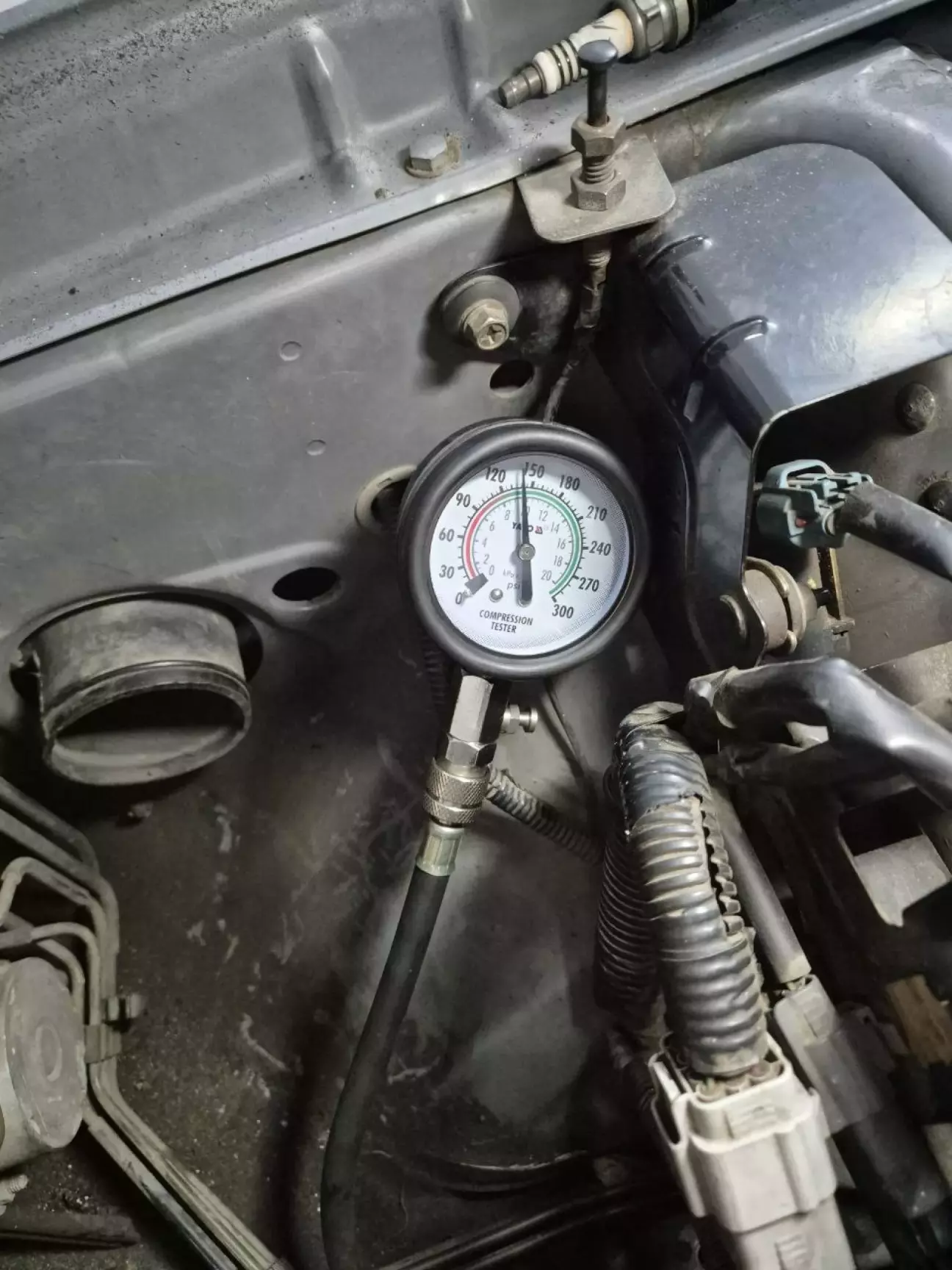 Замеряли компрессию. Эта процедура всегда вызывает стрес, а на субару… однако 10. 10 во всех четырех. Четко.