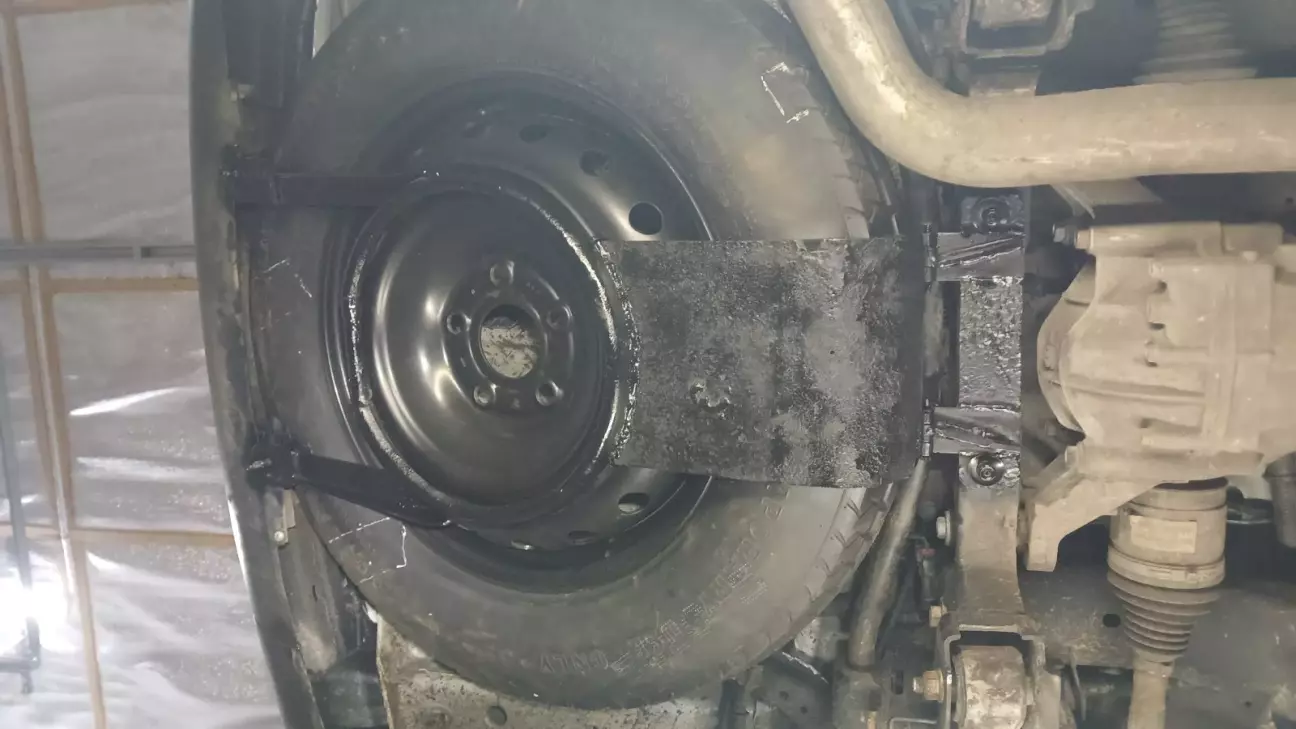 Вітаю! Думаю майже кожного власника авто з ГБО бісить запасне колесо в багажнику, яке не стільки забирає простір, а створює незручності. Як правило запаска може навіть і не знадобитись на протязі багатьох років, але з ним якось спокійніше. Інформації з приводу монтажа докатки на WK2 в інтернеті майже не має. Є лише пару записів які і наштовхнули мене для реалізації даної ідеї. Одразу скажу докатка заводська і по діаметру відповідає штатному колесу 265/6018. Входить дуже туго між бампером і стабілізатором і тримається навіть під власною вагою, також є питання як його доставати але сподіваюсь часто не знадобиться... З задньої сторони тримається до підсилювача бампера через саморобні кроншейни і болти. Спереду примається на пластині що прикручена до кронштейна редуктора через заводські отвори. До пластини приварені завіси і сама лижа що тримає докатку.