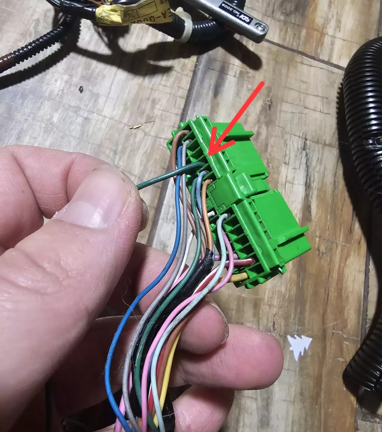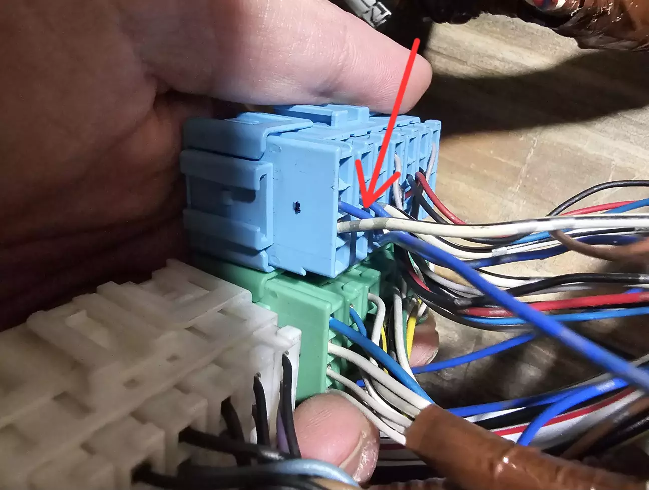 Все потрібне акуратно відділити, проводи які заходили в шини або відрізати щоб далі прикрутитися, або відтрасувати до самого призначення і витягти пін з розʼєму або фішку шини. Тут додам, що в заводській косі постійне живлення скручено до живлення самої магнітоли (до синьої 20 піновох фішки), а АСС береться з шини, але я вирішив підключитися до аксесуарного розʼєму в блоці запобіжників. Там якраз окрім постійного живлення на окремому запобіжнику та АСС ще присутня і підсвітка салону, що трошки спрощує життя.