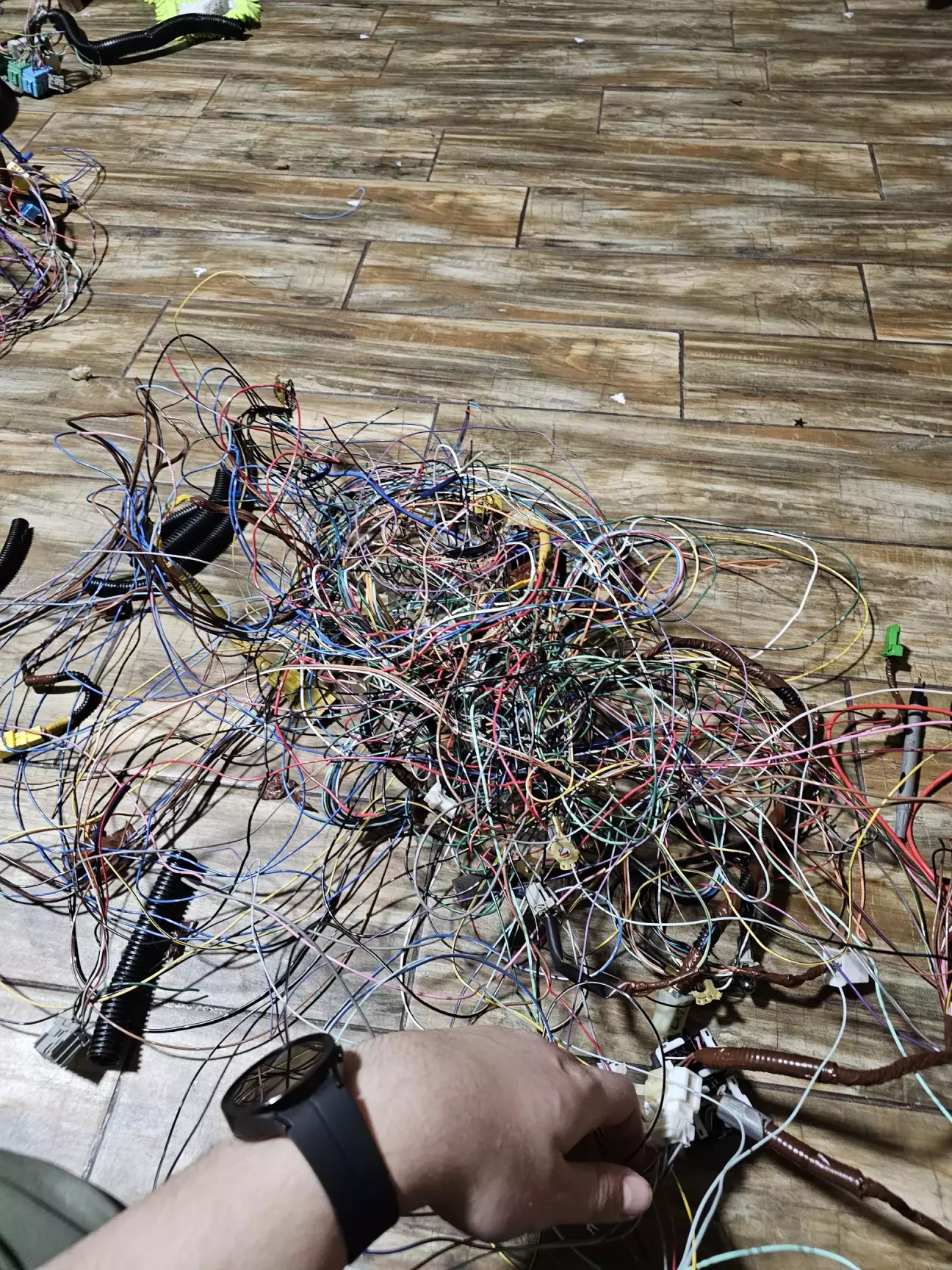 Я пишу майже повна - бо щось таки було відрізано, але нам це ніяк не заважає. Задача в тому, щоб виплести лише потрібну частину проводки. Так, поки не забув, у нас була проводка від дорестайлу, в той час коли авто та система рестайлові. Це ми теж виправимо, але про це згодом.