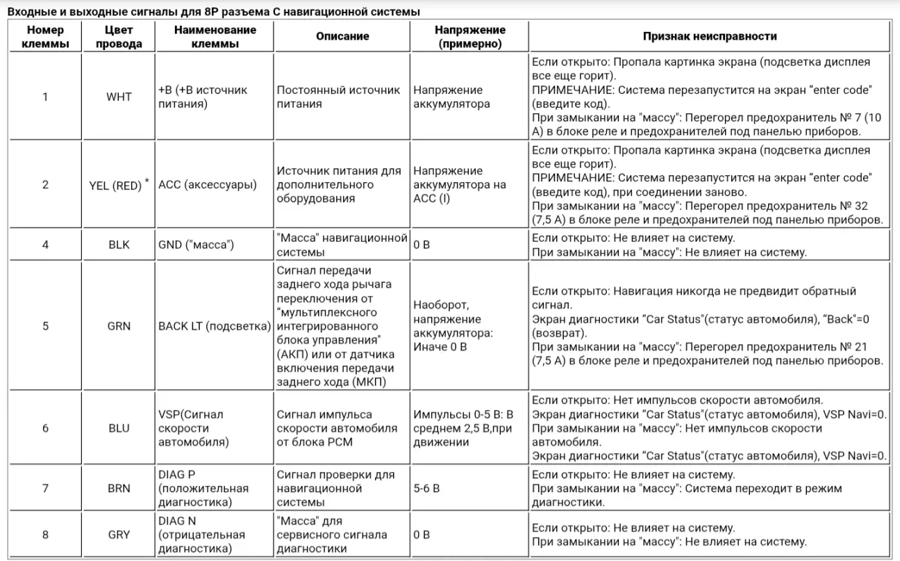 Як можемо побачити змін не те щоб багато, в основному це стосується фішки живлення, 12 пінової у дореста та 8 пінової реста, а також виходу на фішку аудіосистеми для звуків навігації.