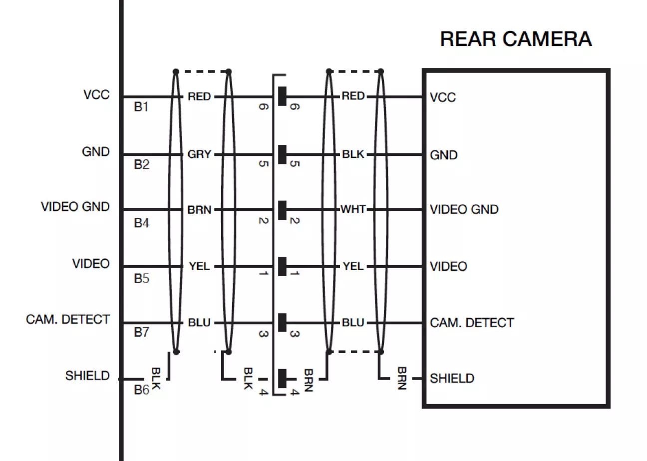 Зверніть увагу, що пін B7 (CAMERA DETECT) має бути зʼєднаний з масою, таким чином магнітола розуміє що камера підключена.