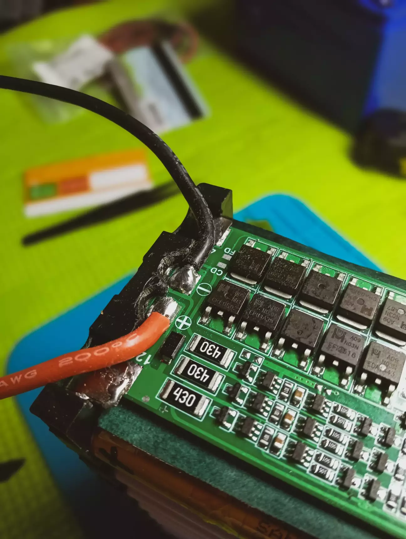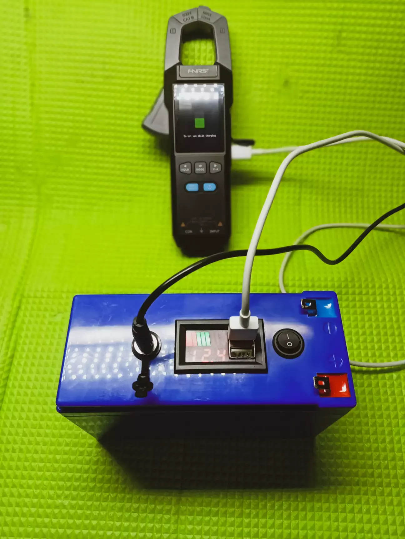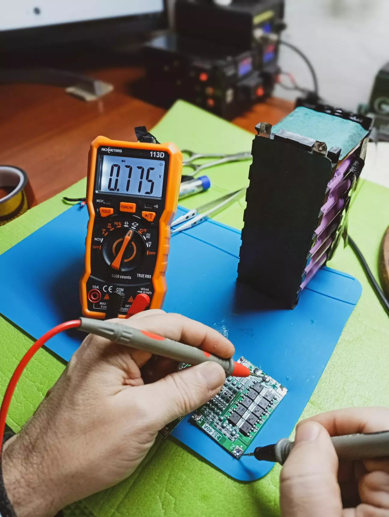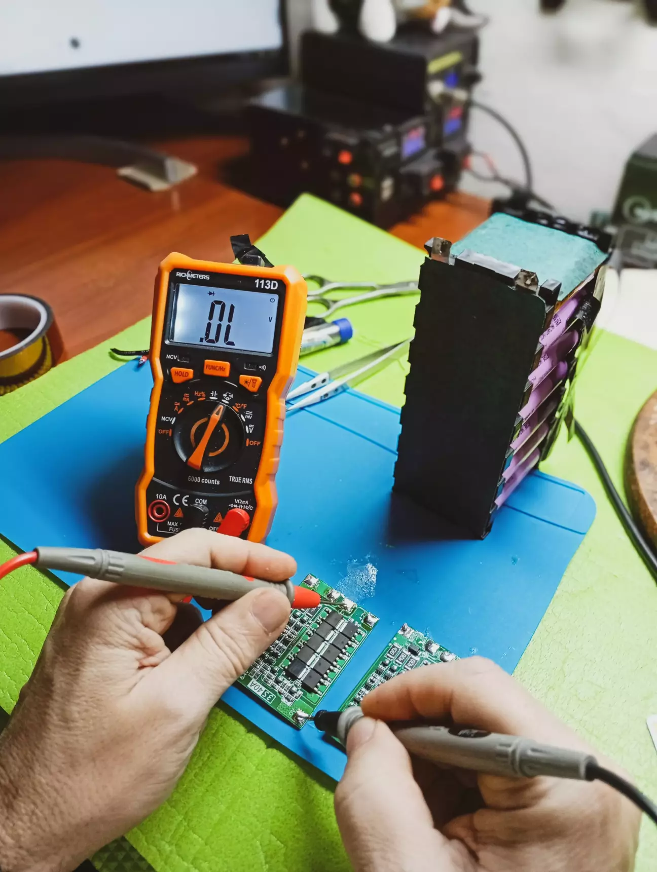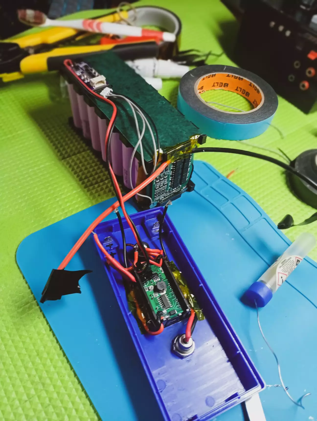 Перевіряю напругу до бмс і після, все є, але, тут черговий косяк, навантаження після плати не працює 🙃 Хоча з'єднував все як положено, починаючи з нуля і всі по черзі до 12.6в, щоб запустити плату, під'єднав зарядний пристрій, не допомогло, походу плата сказала я не хо... 😬