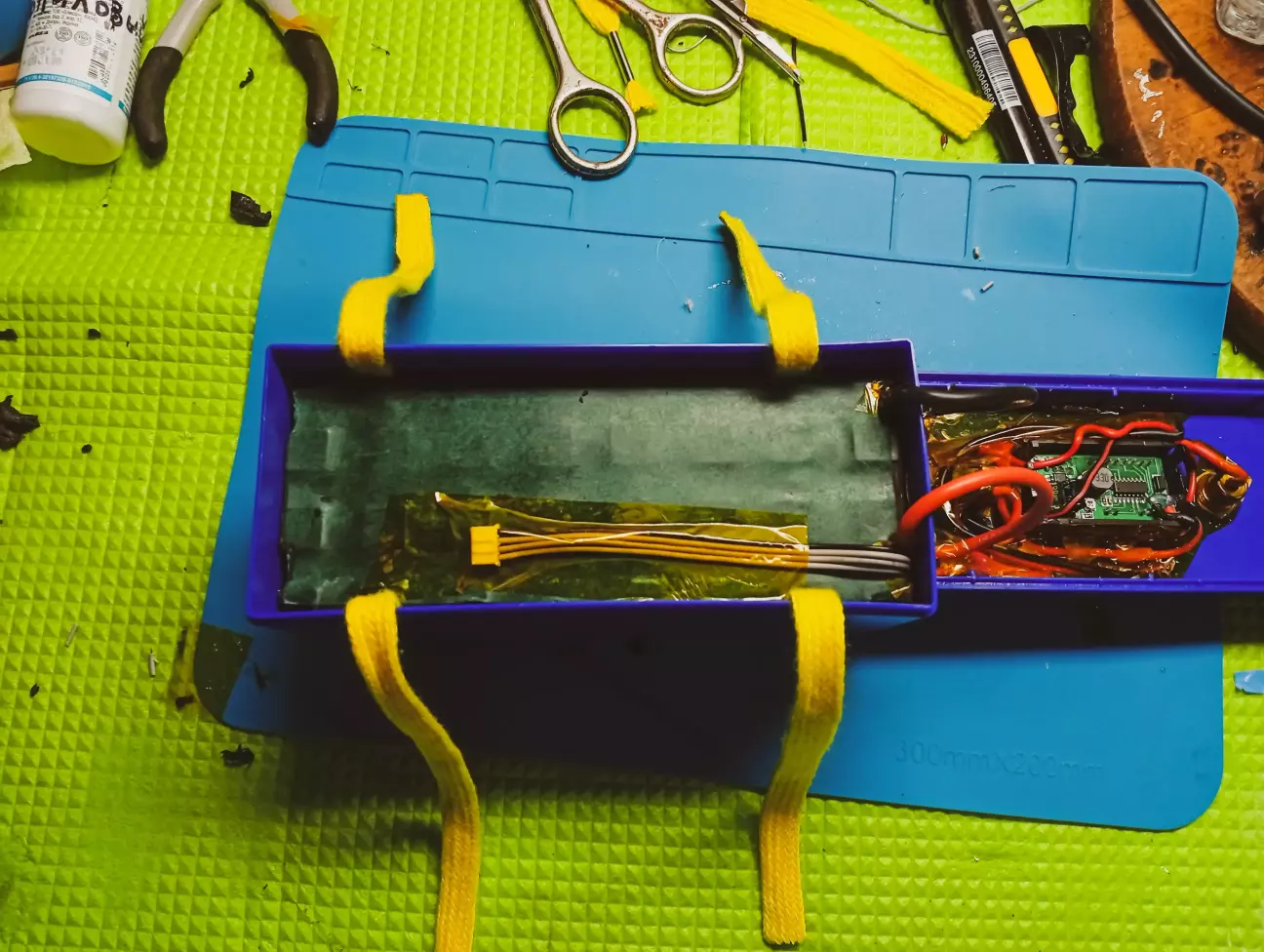 Накриваємо ізоляційним картоном, щоб випадково не було передчасних новорічних салютів в квартирі, струми не маленькі))