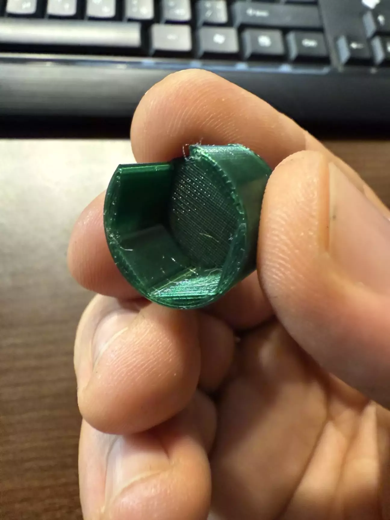 Але зясувалось, що пластина не дуже тримається у ковпачку. Тому вирішив зробити площину прилігання. Так зявилась друга версія ковпачка.