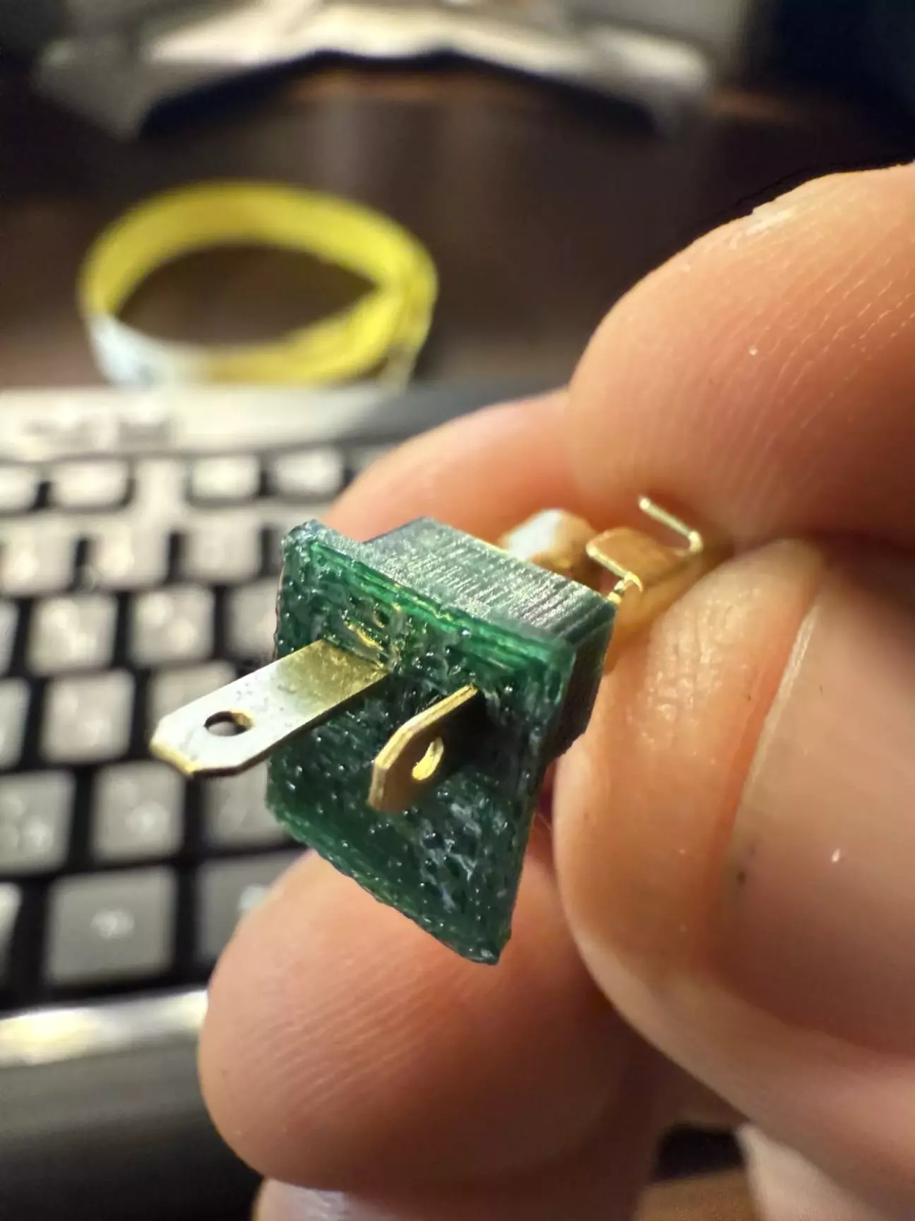 Далі почав приміряти це всі до датчику та зясував, що клеми мають впиратись у стопор, щоб триматись. Тому переробив пластину клеми та додав тіло для міцності кріплення клем та їх стопору. До речі, радіоринок в Києві вже не той... не зміг там знайти ці клеми на 2,8мм. Знайшов на авторинку на Відрадному.