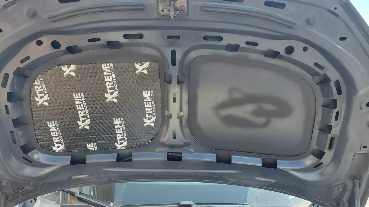 Ну і трохи капот ізолював, але перед заклеюванням помив, зачистив ржавщину, потім перетворювач іржі, обезжирення і антикорозійний захист.