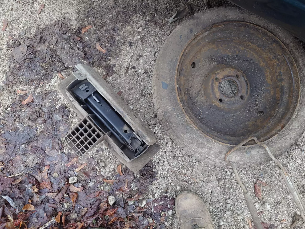 З того що бракувало, щоб зробити цю міні рівізію, це балонный ключ яким відкручюються болти на колесі і їм же болт який тримає кріплення запаски. Знайшов на промі і замовив, через пару днів він був вже у мене в руках. Знайшов ши час, настав момент істини, відкручюю кріплення, колесо падає під ногі, і що я бачу в середені колеса... Правельно, той самий донкрат, видно сам власник і сам не знав що він там є, я цьому зрадів бо мінус одна трата на доукомплектування авто, бо дорога є дорога.