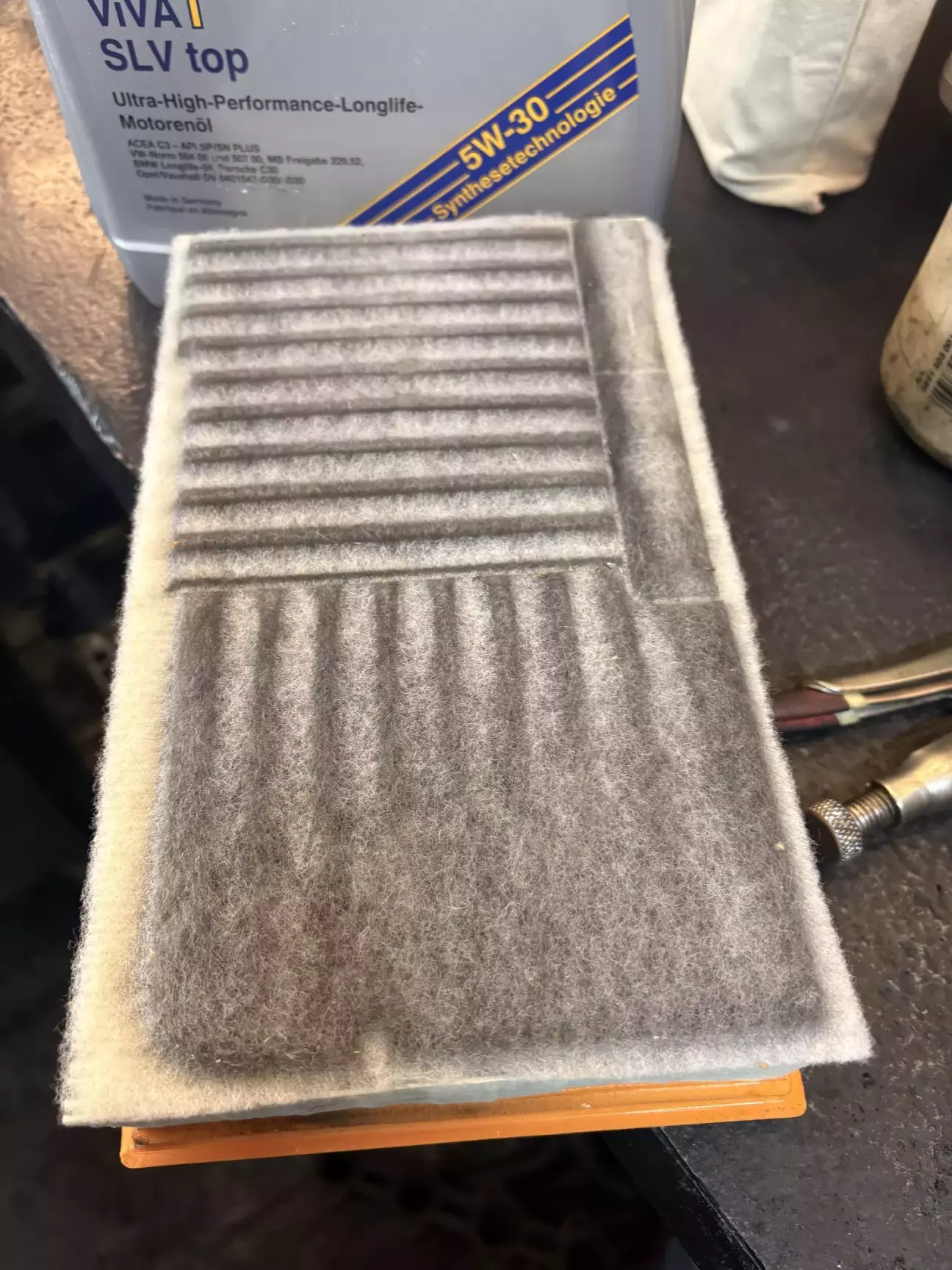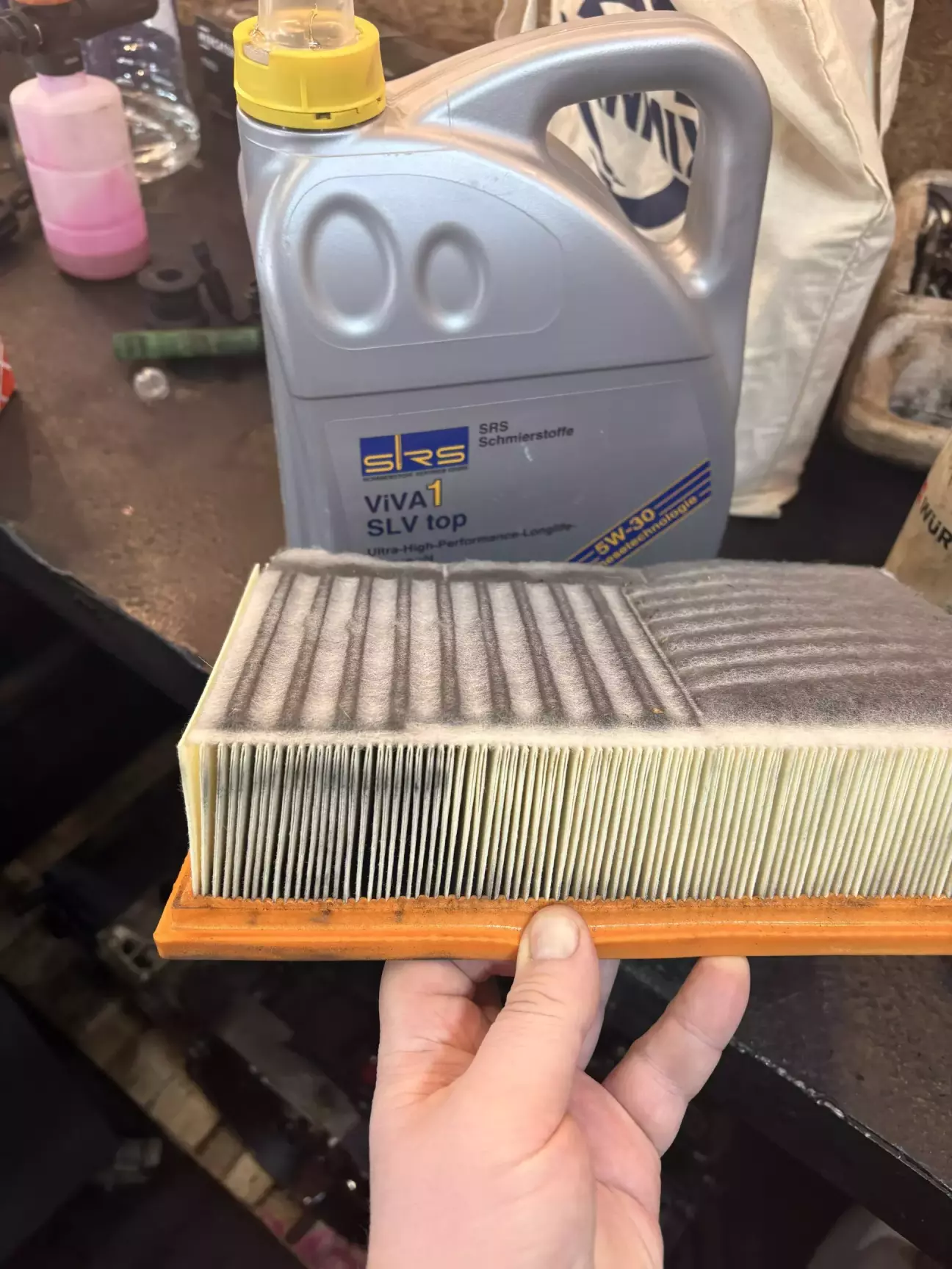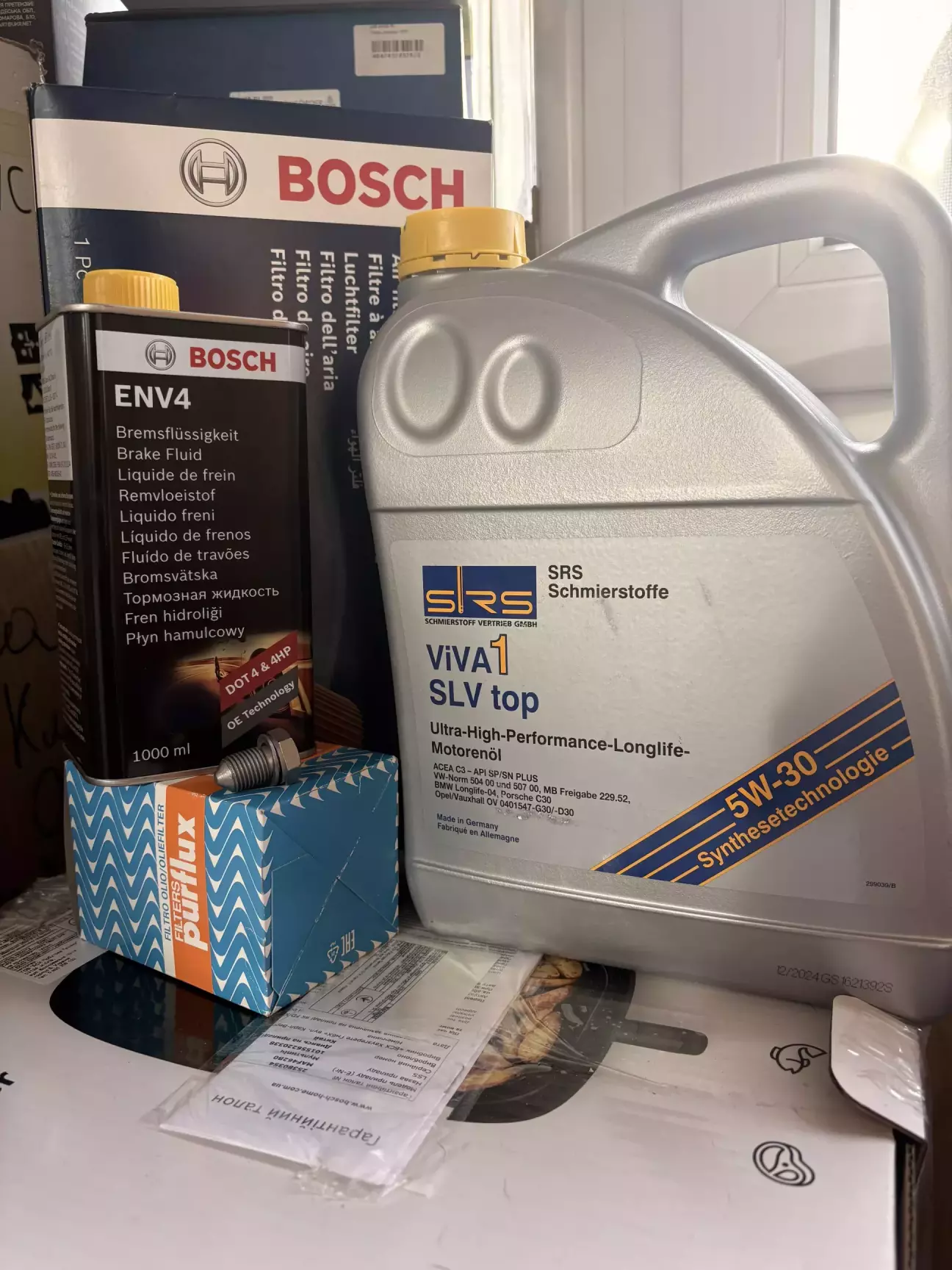 Пробіг за пів рогу 8000 км, тому настав час змінити мастило. Як завжди SRS із допуском 504/507 С3. Масляний фільтр Purflux. Повітряній фільтр на цей раз купив Bosh.