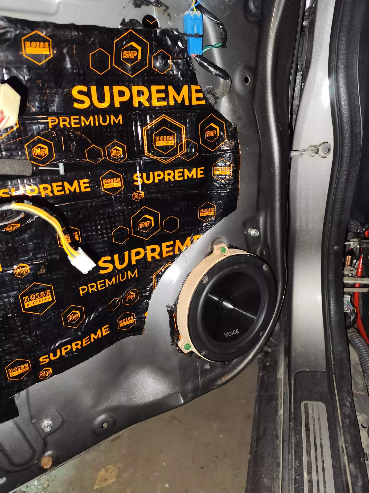 Зробив вібро- шумо ізоляцію 4 дверей. Встановив Андроїд магнітоли cyclone,передні 2х компонентні динаміки voice e62c, задні е62м мідбаси. Всі динаміки в штатні місця,навіть твітера. Все грає від 4х канальніка kicx kap 44.