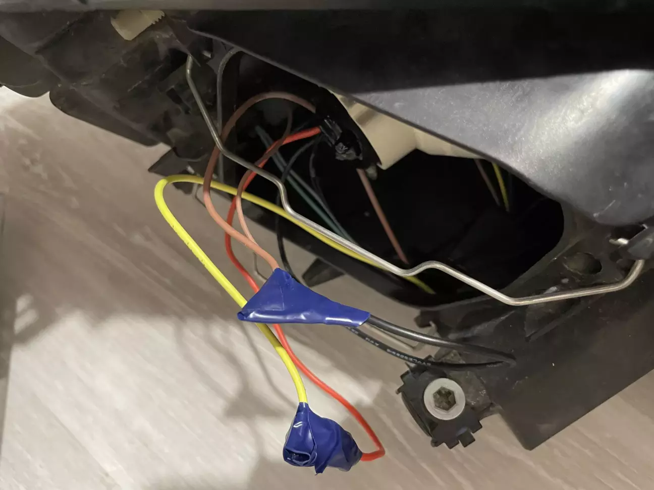 - Заклеів гайку та різьбу екпоксидкою щоб не розкрутилась, далі розклав і розтягнув бутил каучуковий герметик поверх існуючого, бо реально було впадло то все вичищати декілька годин. Розігрів герметик і заклеїв фару.