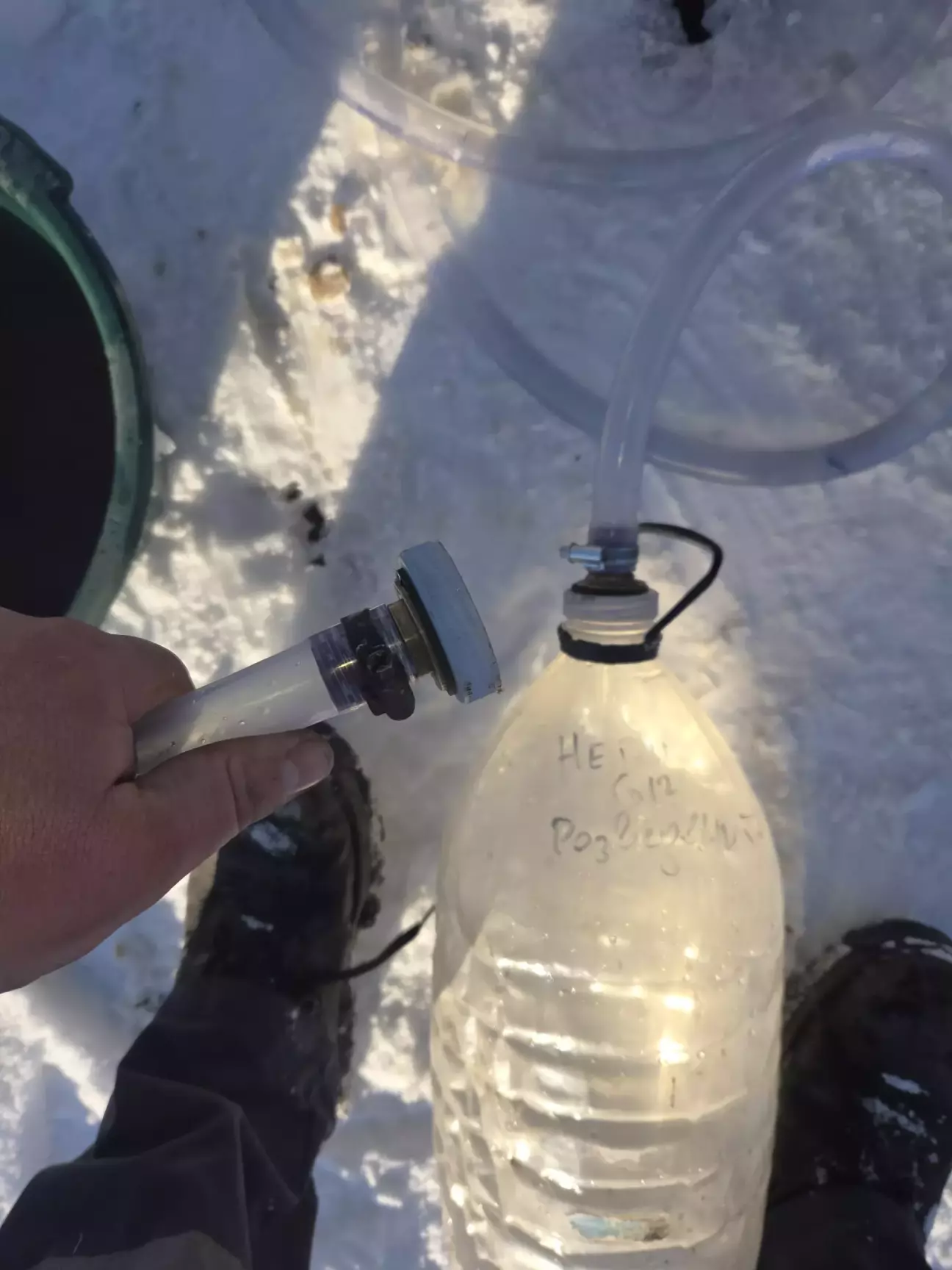 Далі цю воду вже не використовую, щоб не загнати цю всю срань, назад в радіатор. Розвожу нову воду, наливаю в бутель, а інший бутель залишаю пустим, стискаю, щоб, максимально вийшло повітря і підключаю до вхідного ратрубка радіатора.