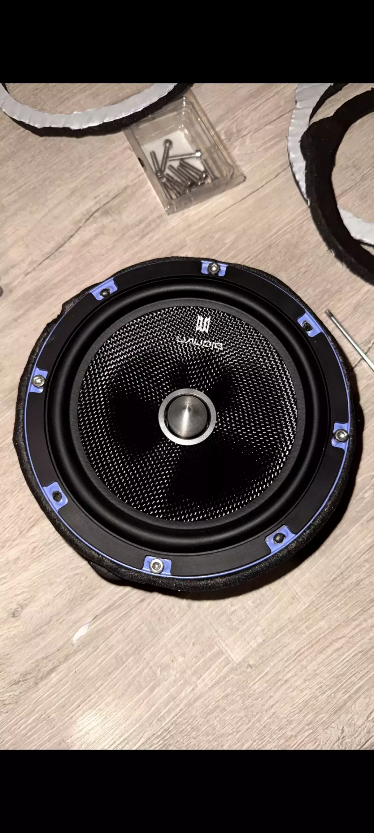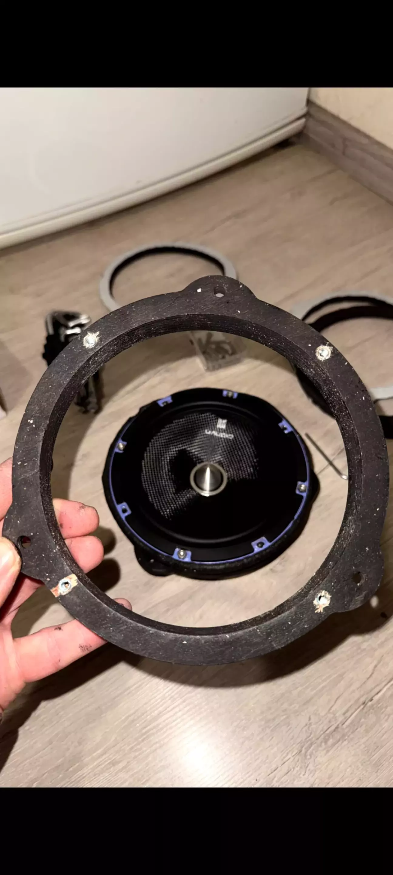 Крутити саморізами в заводські подіуми, з яких виламують штатний динамік, бажання не було. Замовив проставки з фанери в Papa Karlo під Kia Cerato.