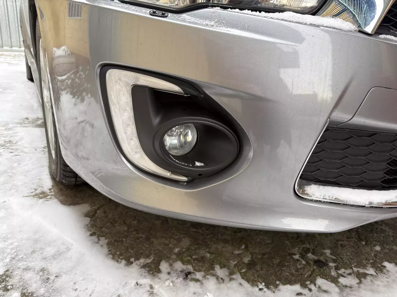 А тут довелося попріти на холоді, кожного разу знімаючи туманки для обертання регульовочних гвинтів. Бо знизу нема до них доступу. Спочатку зробив імпровізований стенд на відстані пару метрів і відрегулював одну з протитуманок.