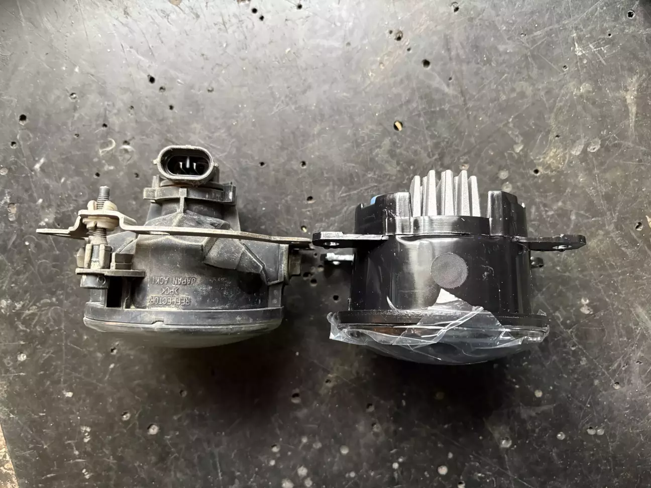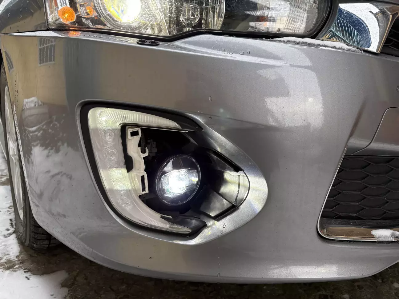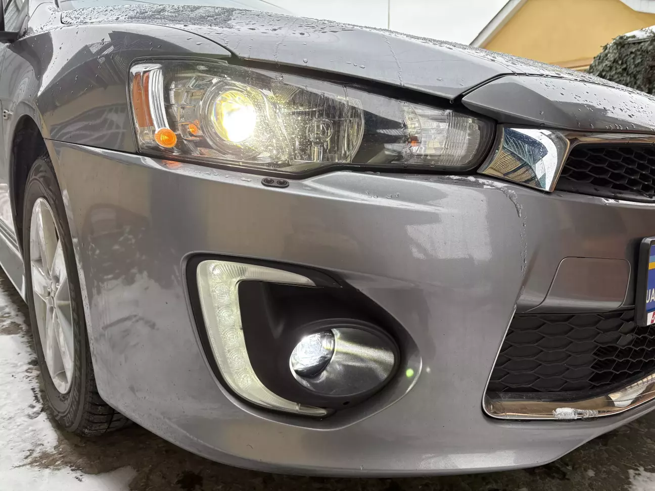 Але ж жаба неугомонна: всім можна, а ми чого пасем задніх? Замовляю і собі led туманки. Стоять копійки, бо це китайська репліка, але ж відгуки непогані. І типу на Мітсубісі підходять. Тож в якості експерименту згодяться. Отримую таке чудо.