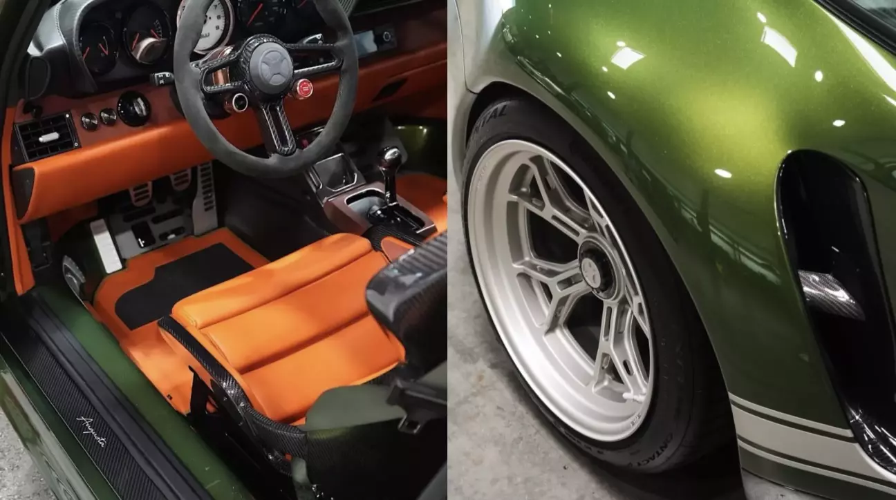 Якось побачила в інсті рестомод порша з гарним, теплим, зеленим металіком і з таким же помаранчевим салоном та карбоновими елементами.
