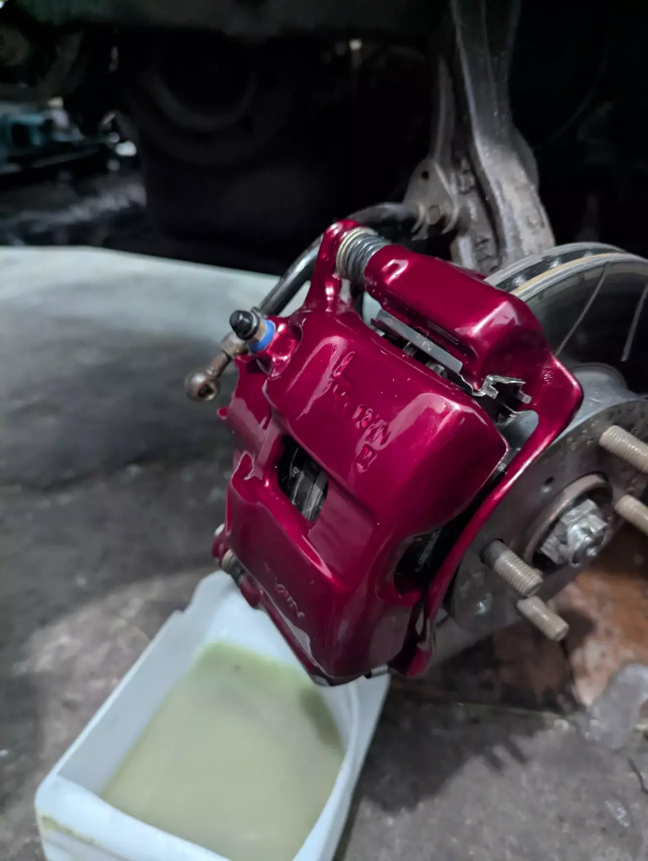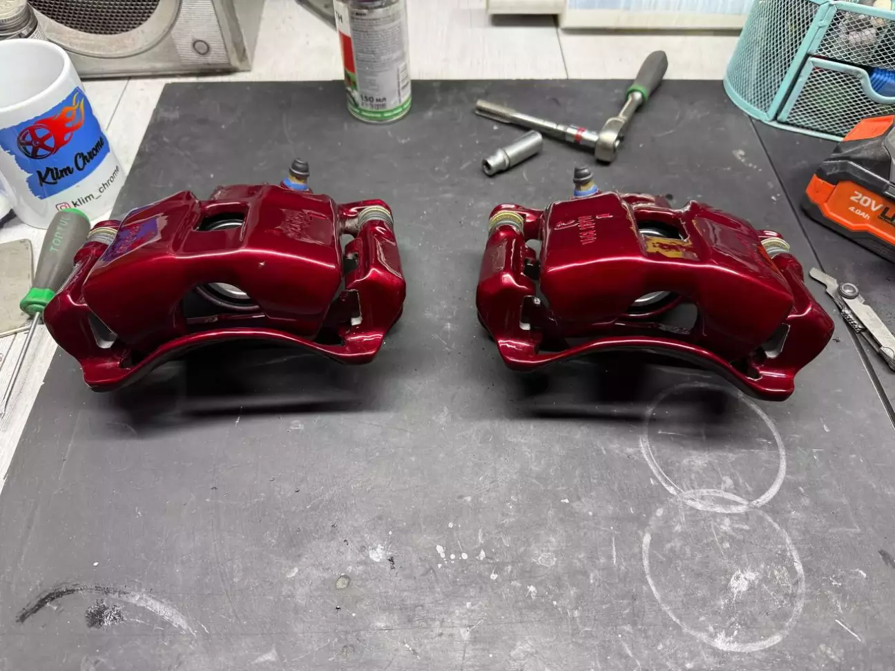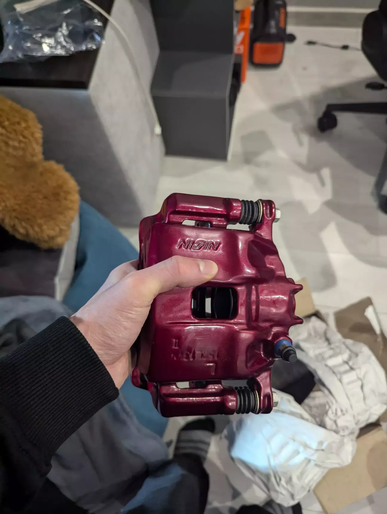 Коротше, загалом стало зрозуміло, чого навіть нові колодки пищать навіть з новими дисками, поліз шукати ремкомплекти на цю всю історію і раптом згадав, що той же вищезгаданий @PrikolistUA в барахолку Редлайнерс скидав на продаж сексуальні супорта Nissin, відреставровані і в червоному кенді кольорі. Саме такі, як у мене і стоять по оригіналу.