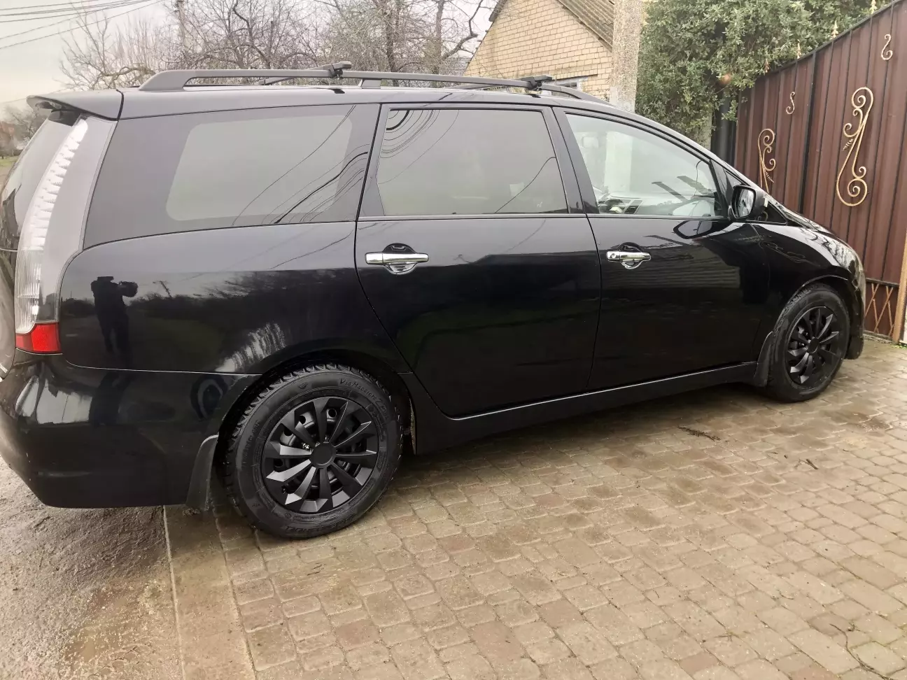 Сегодня нашел время установить колпаки на колеса. Дополнительно закрепил чёрными пластиковыми хомутами.