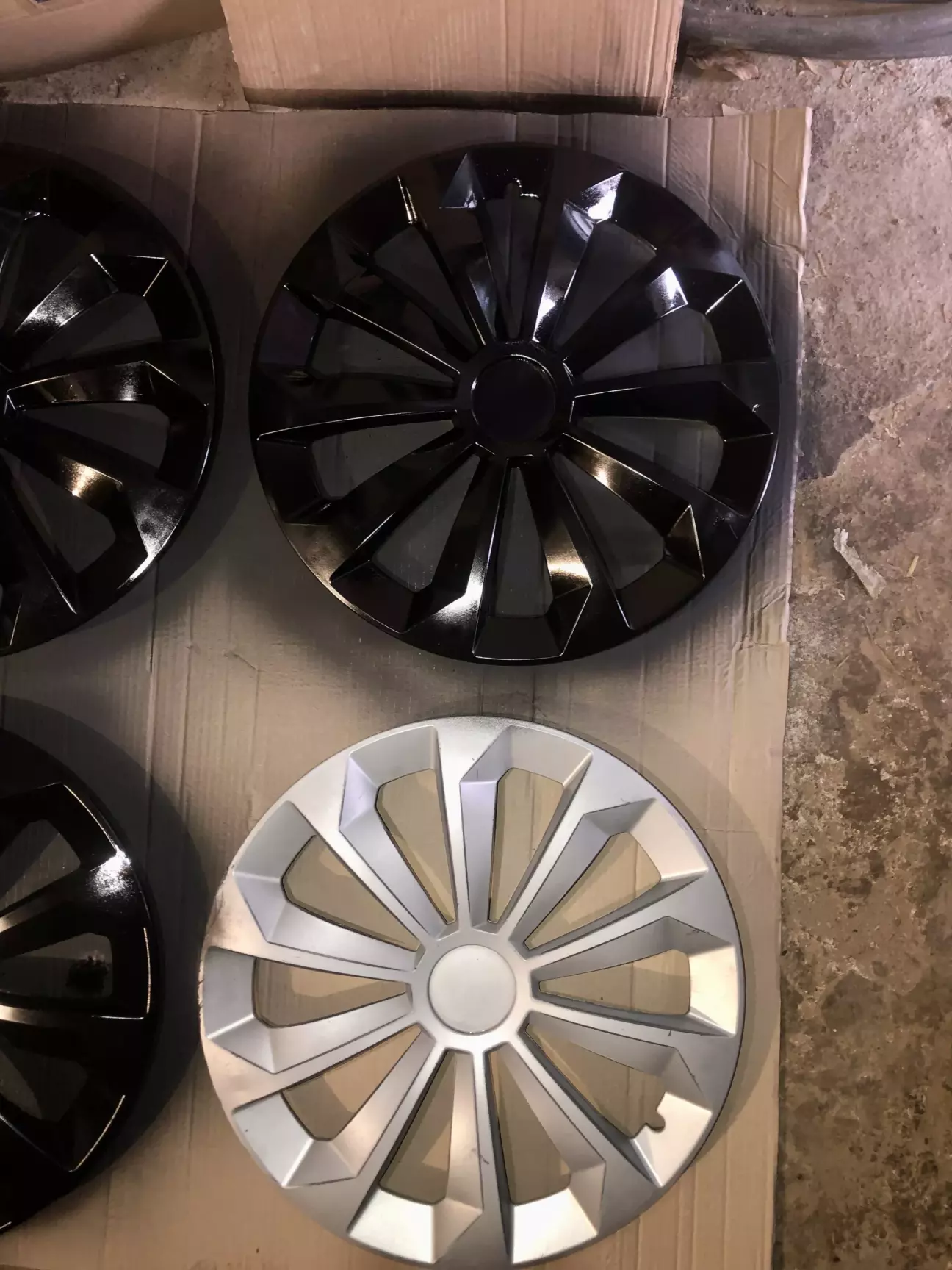 Собрал колеса на железных дисках, но нужно было ещё установить колпаки. Типа так аккуратнее смотрится. С прошлой машины у меня остались колпаки. Но они были серебристого цвета и естественно, уставшие.