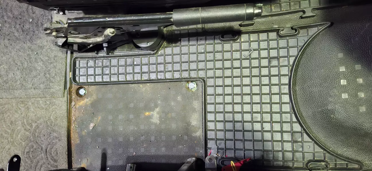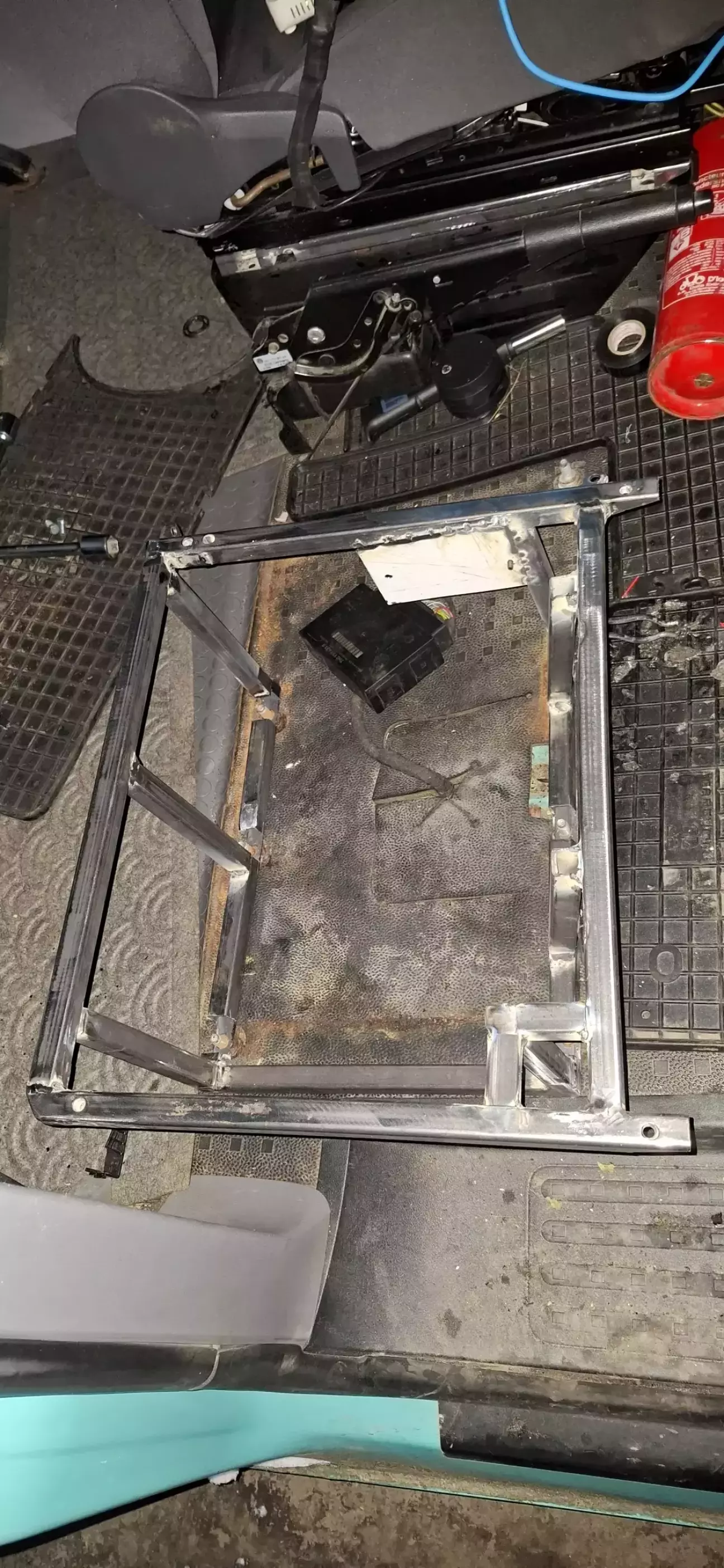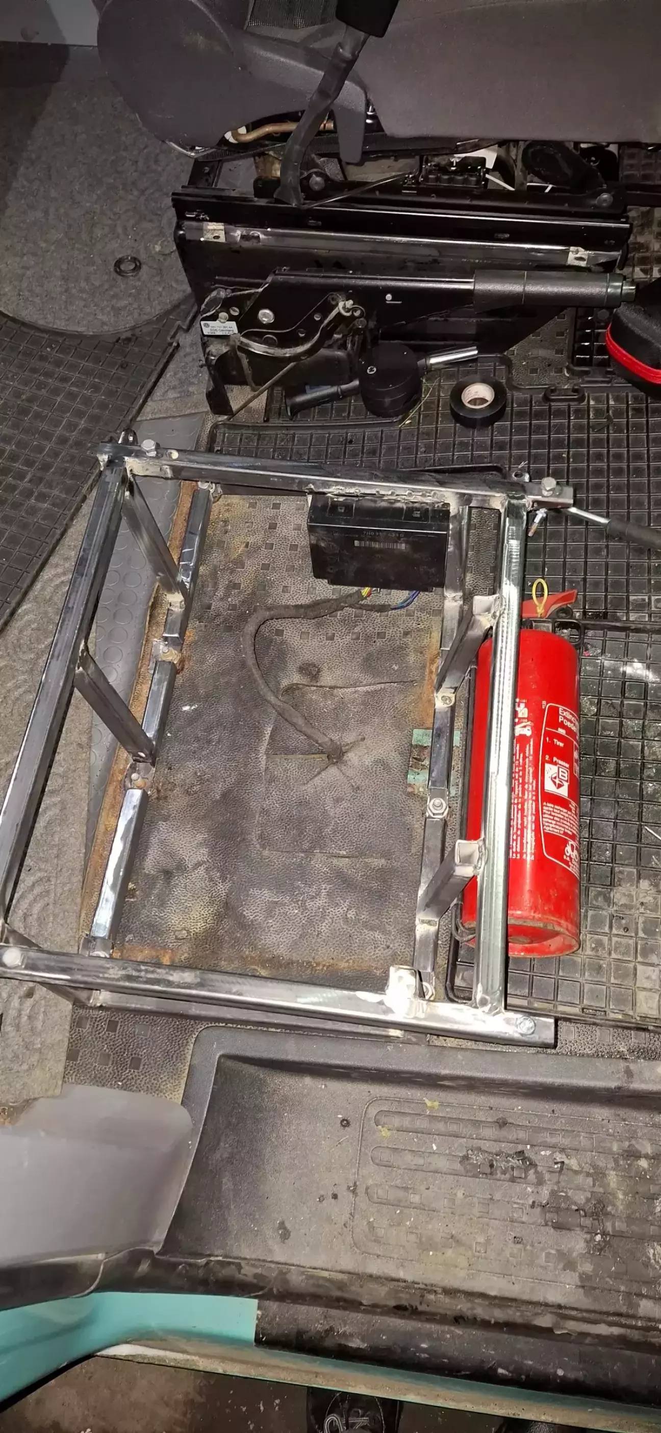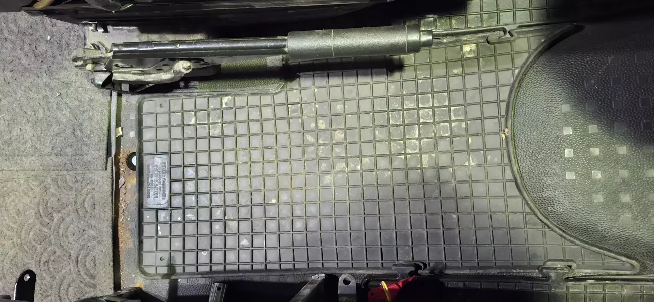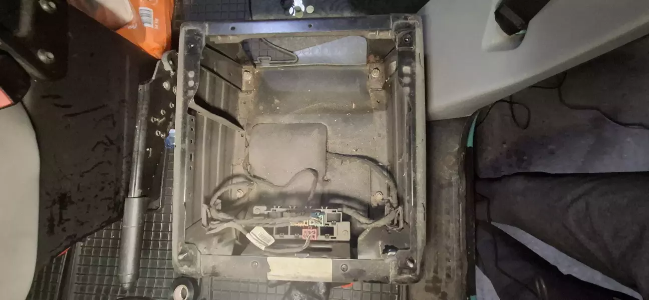 Тумба під водієм. Сидіння не стають болт он. Так як салазки сидіння з т5 мають особливу конструкцію, скільки я не читав, тільки в т5 так вузько розташовані салазки. Але саме сидіння має високий профіль, що дає змогу зробити перехідну пластину(адаптер).