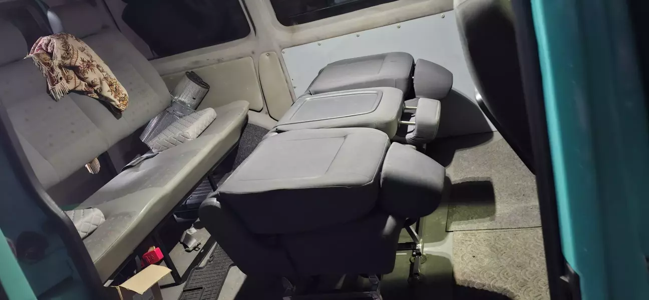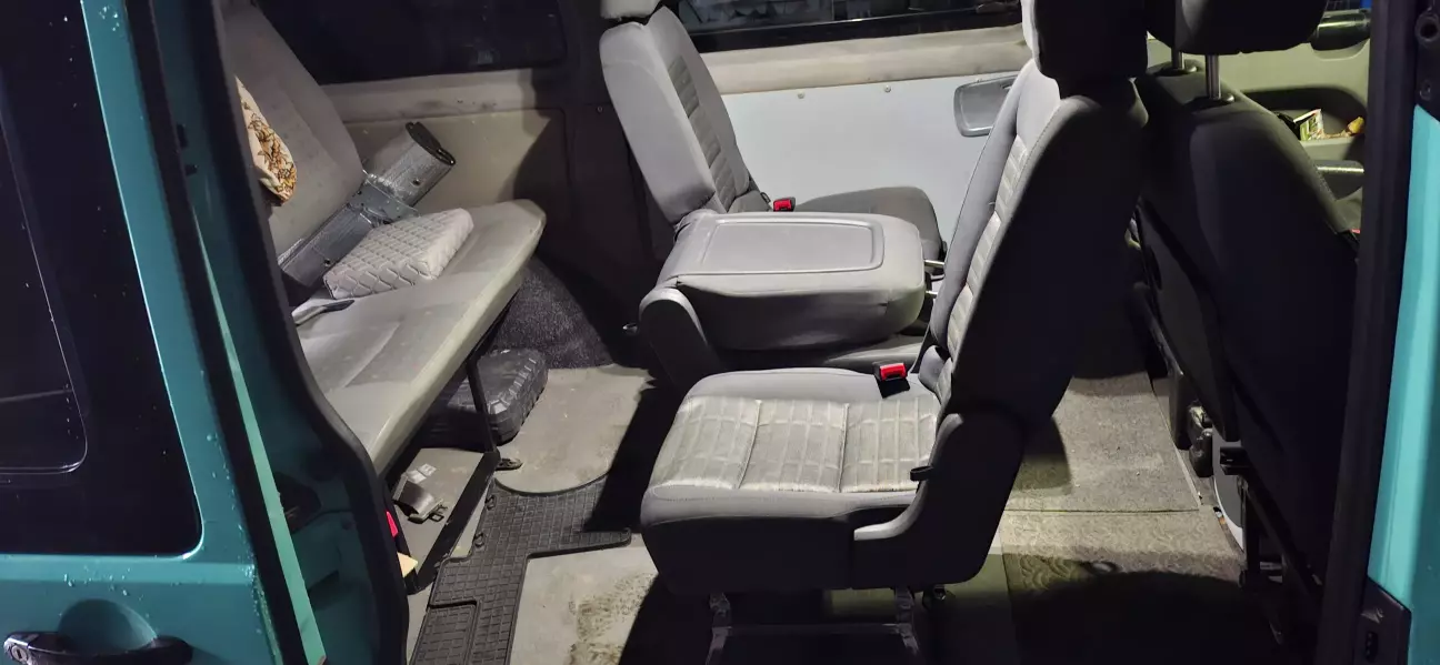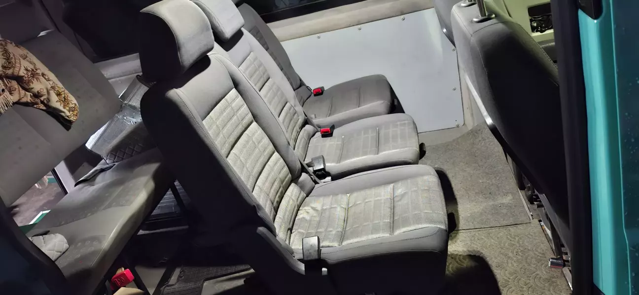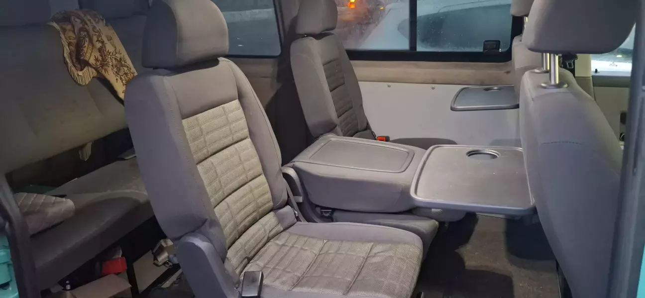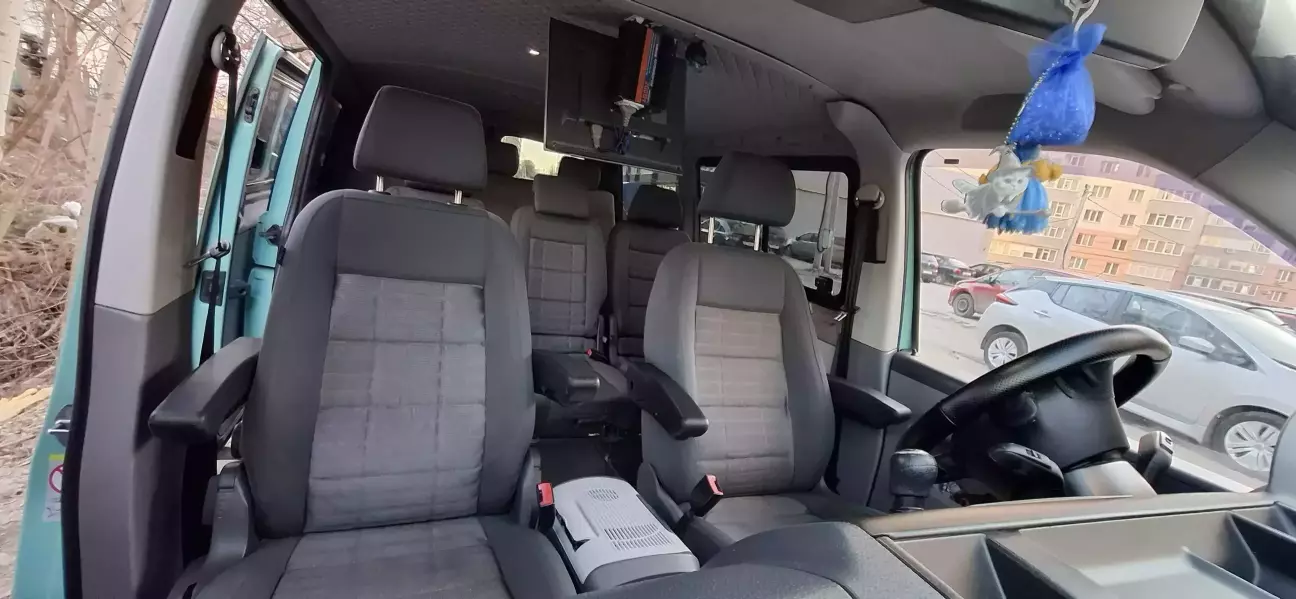 В мене бус 8+1, звісно пасажир не с заводу, скоріш за все з Бердичєва. Попереду спарка, позаду стандартні сидіння т5 або каравел. Що спарка, що задні сидіння, без жодного регулювання, що дає велики не зручності при дальніх поїздках. І здавалось, та і не хай, водійське ж регулюється. Так водійське має регулювання спинки та не робочий ліфт. Але воно має 2 підлокітника і це тема!