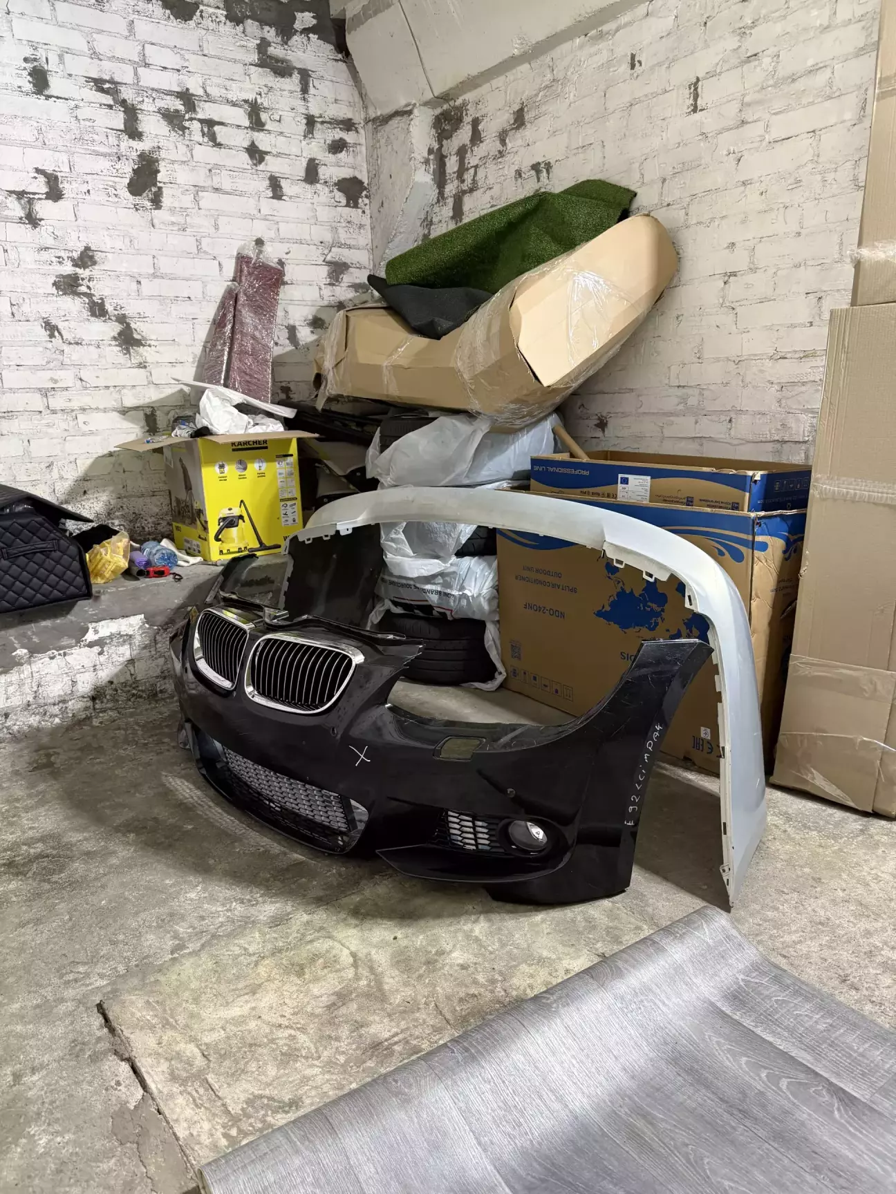 Наступним етапом (хоча насправді він йшов паралельно з іншими роботами) став пошук запчастин для переходу на зовнішній М-пакет: бампери, дифузори, пороги, патрубки охолодження гальм, телевізор і передні частини підкрилків