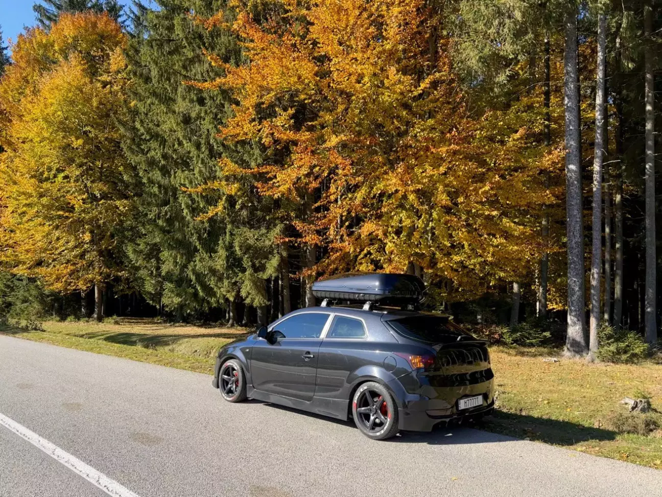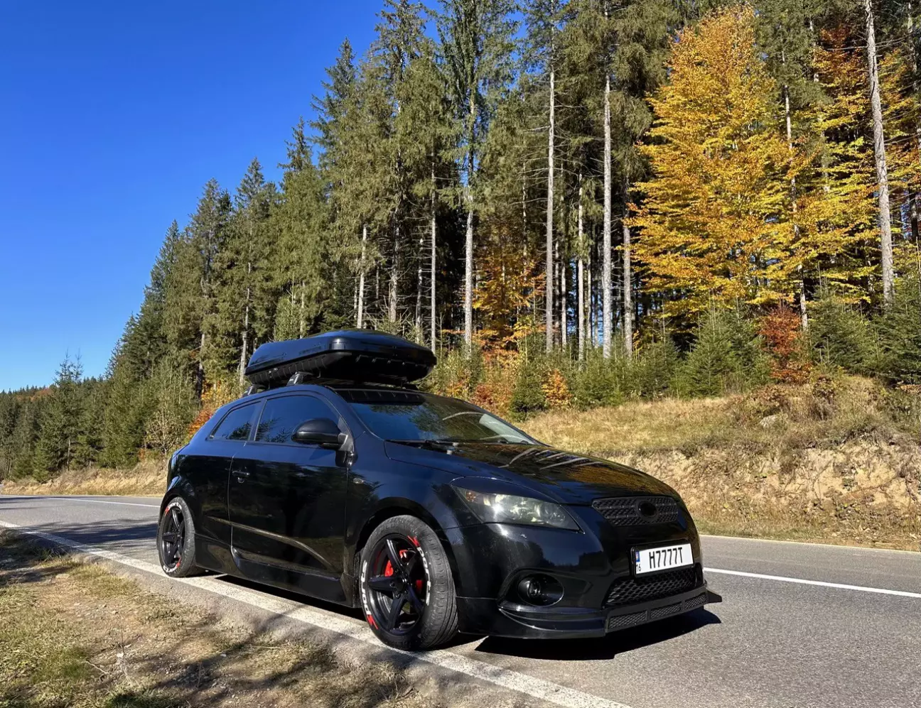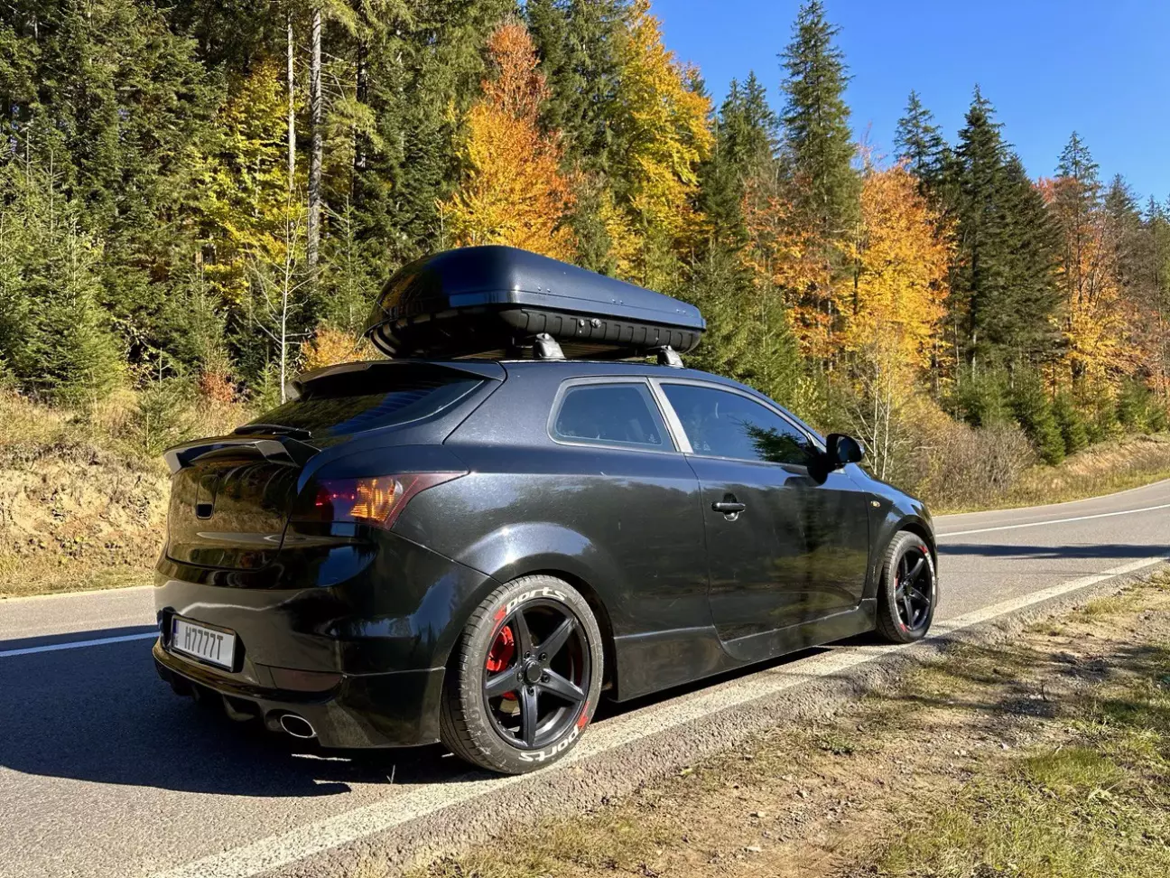 Дивно, але саме він більш всього підходив на мій погляд. По-перше, він був широкий майже на всю ширину мого даху. По-друге, він не дуже високий і цікавої форми. Та по-третє, він має досить бюджетний цінник на відміну від дорогих брендів. Але в нього був один великий мінус як для мене. Я обовʼязково хотів бокс чорного глянцевого кольору. Щоб підходив до машини. А ця модель була матова. На жаль не було глянцевих варіантів такого боксу. Трохи поміркувавши та порадившись з рідними , я таки вирішив брати його. А проблему з кольором вирішив перефарбувавши його в чорний глянець. До того ж в мене кум найкращий маляр на районі. Також до боксу вибрав чорний багажник на дах фірми Turtle.