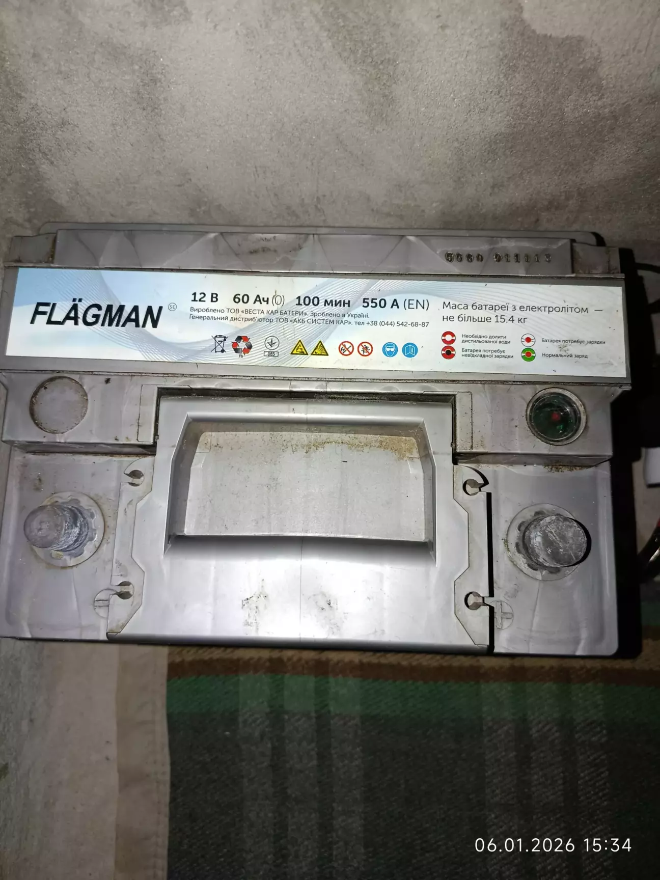 Друзі підкажіть який обрати акумулятор в авто. Зараз їжджу на Flagman 60 550 А куплений ще в 2019 році. Сам по собі нічого, але на холоді почались вже суттєві втрати напруги, якщо приїзжджаю на роботу і залишаю машину на вулиці, то через 2 години вольтаж дорівнює 10,5 вольтам на незаведоному двигуні, на заведеному 12,6. Он період холодів та вихідних таскаю його в будинок кожного разу. Ось його фото...