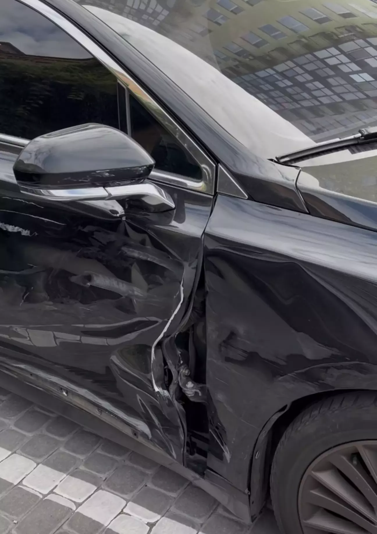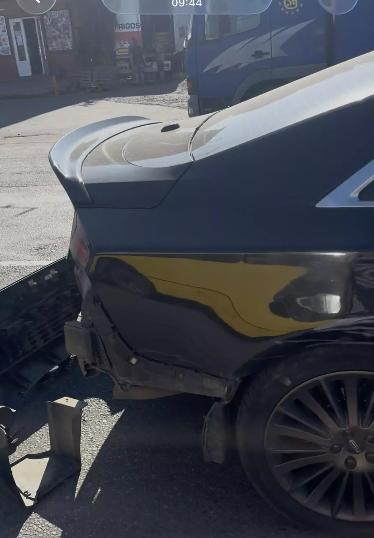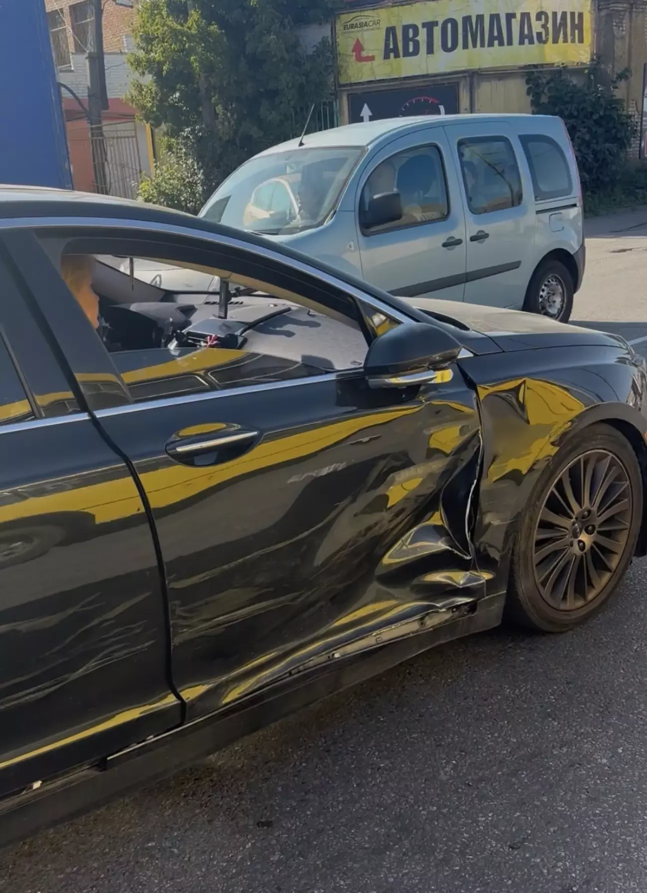 Коли я вийшла, то побачила спочатку тільки бампер, який відпав. Дзвоню чоловіку, кажу, мчи в мене біда. Потім обійшла автомобіль і дзвоню ще раз, щоб їхав швидше 😁
