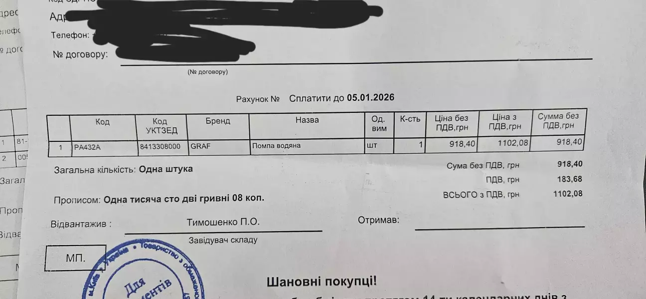 Водяна помпа поїде на повернення , на момент замовлення все що було по наявності