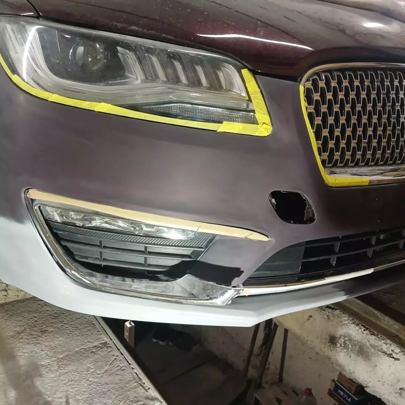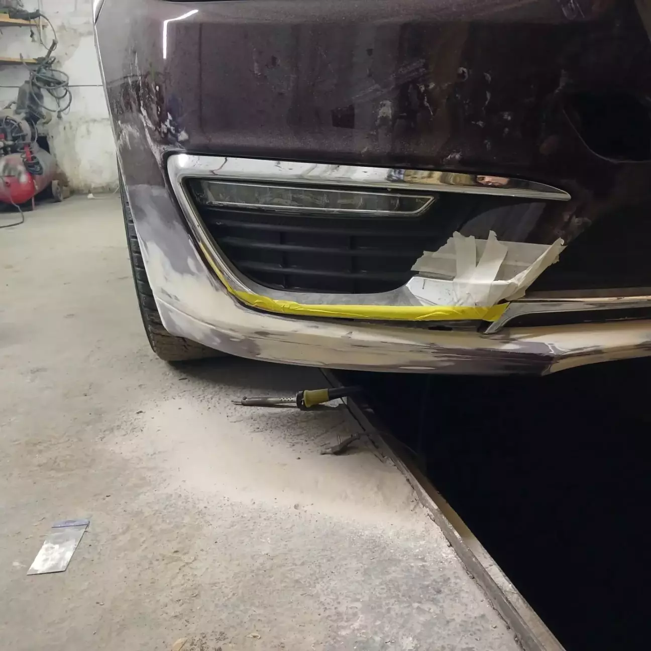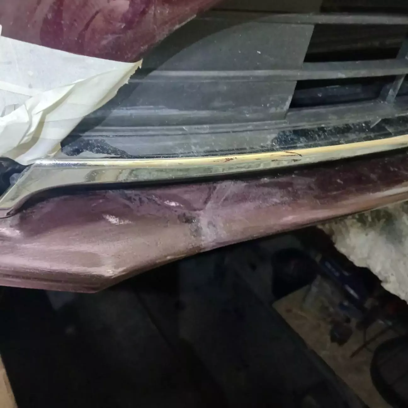 Після цього взялись за передній бампер: частково відновлювали, частково фарбували. Візуально авто почало виглядати значно краще.