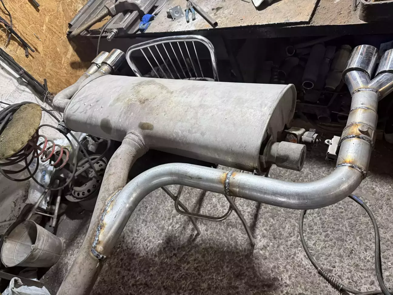 Найдешевший, надійний спосіб отримати більш цікавий звук і візуально більш красивий вигляд автомобіля. Шви пройшли добре. З використанням ендоскопа звичайно! Штатну заслонку виправили, тому що вона у мене брякає на холодну. Вона керується вакуумом, відповідно просто заглушили вакуумну магістраль і вона залишилася завжди у відкритому положенні. І звичайно використовував свою іншу заслонку для того, щоб керувати гучністю вихлопу. Можете сказати колхоз, але знизу ж ніхто цього не бачить. До того ж всі шви зафарбували фарбою, щоб був більш цілісний вигляд ( на фото ще це не зробили ). Головне, що вихлоп ніде не сифонить, все добре зварено.