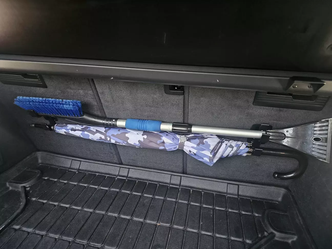 4. Кріплення б багажник під парасольку. А в моєму випадку, під парасольку та під щітку для снігу. Кріпиться на фіксатори зворотньої сторони задніх сидінь. По вигляду, як там і було. Ціна 145 грн.