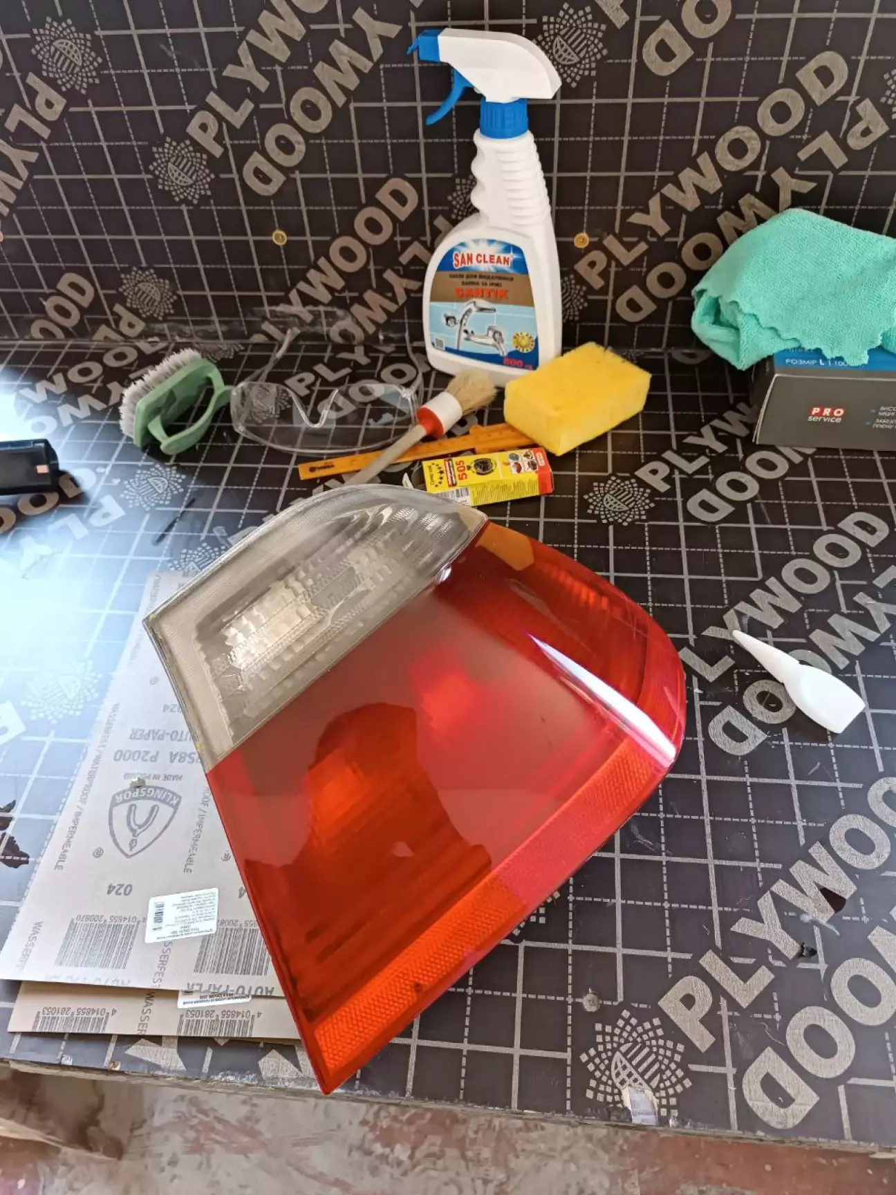 Джерелом покупок був Епіцентр. Набрав наждачних паперів від 1000 до 3000 і поліроль для пластику від Motip. В магазині ще була поліроль для фар від К2. Не знаю, чого, для мене це була сумнівна ідея. Взагалі сам підхід частково адекватний. Відшкурити фари так, а полірувати такими матеріалами трошки не серйозно. Звісно хотілось узяти полірувальну машинку, нормальні пасти і зверху натягнути плівку. Тому повернемось до цього питання ще раз, коли будемо повністю відновлювати усі ліхтарі. Там назбираємо грошей на всі інші компоненти, підійдемо до питання комплексно і якісно. Але в цілому, я результатом для першого разу задоволений