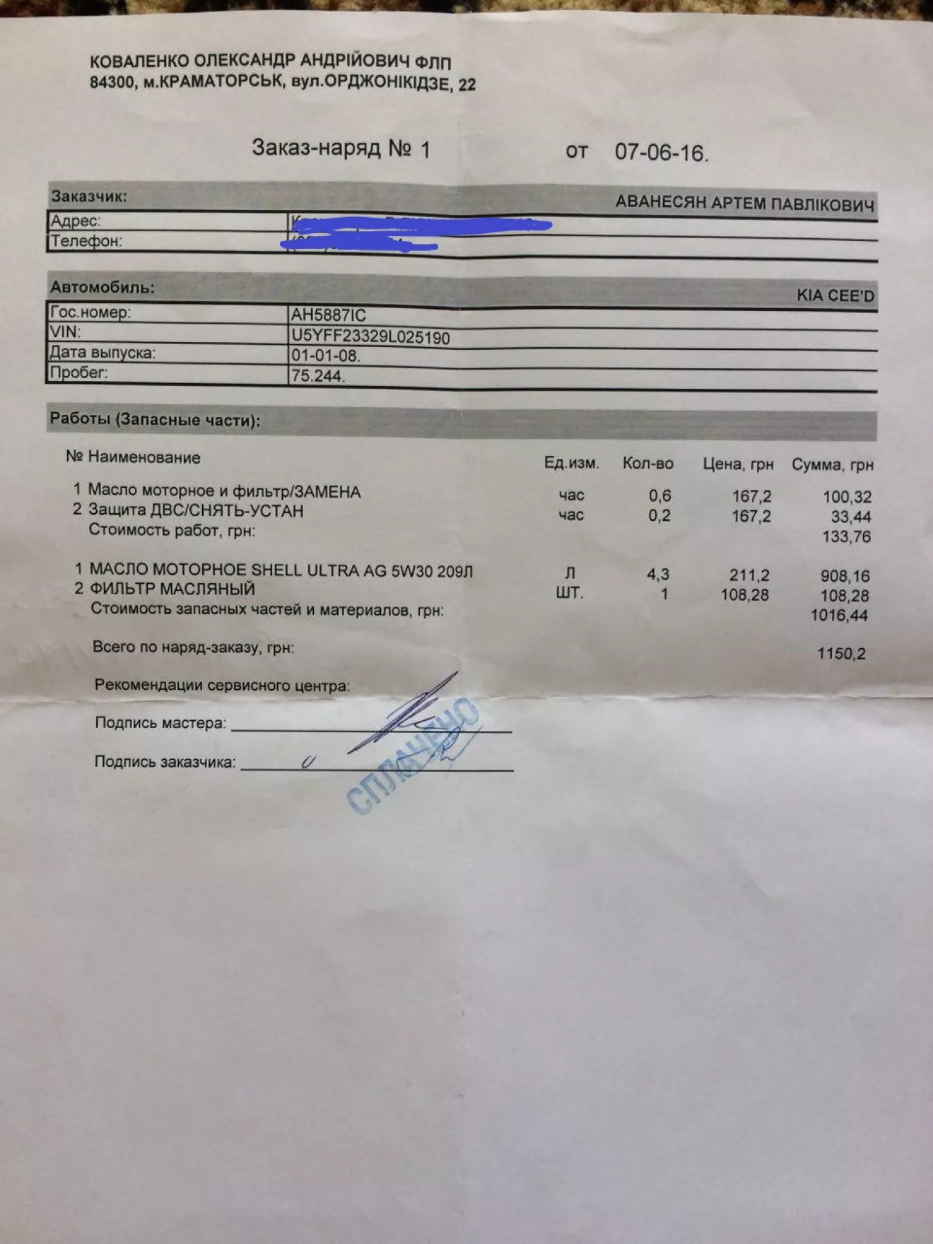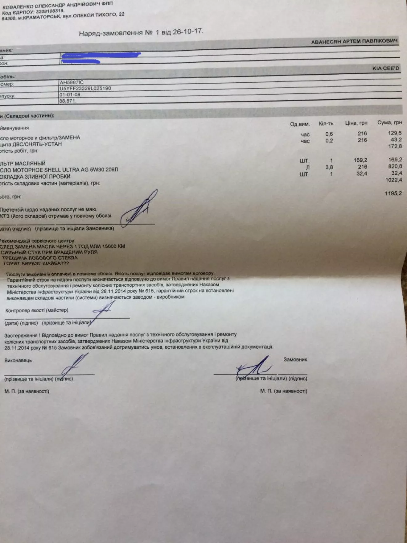 Масло я все же поменял, сьездил к Дэну в "Габарит" и купил Shell 5W-40 4 литра, масляный фильтр MANN и фильтр двигателя. Чек вышел на 1000грн. Поехал на Альфу, где интересный дядька, образом схожий на советского инженера, с терпением и описанием ньюансов слил масло и откачал остатки с поддона после чего путем хитрых измерений мы с ним вычислили, что 3.8 литра является 3/4 щупа от минимальной до максимальной отметки. Замена обошлась в 90грн.