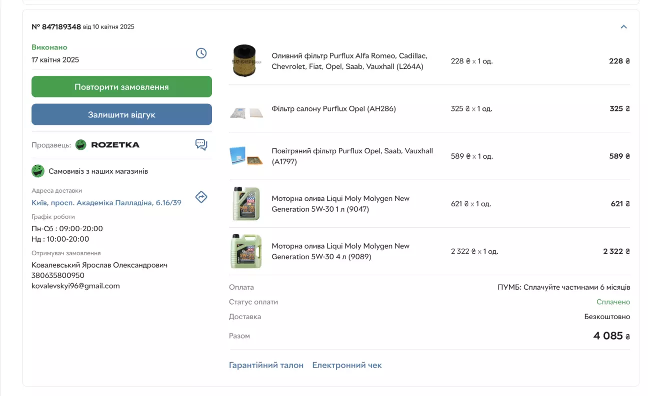 updated: виявляється не записав минуле ТО, яке було у квітні, прикладаю скрін того замовлення