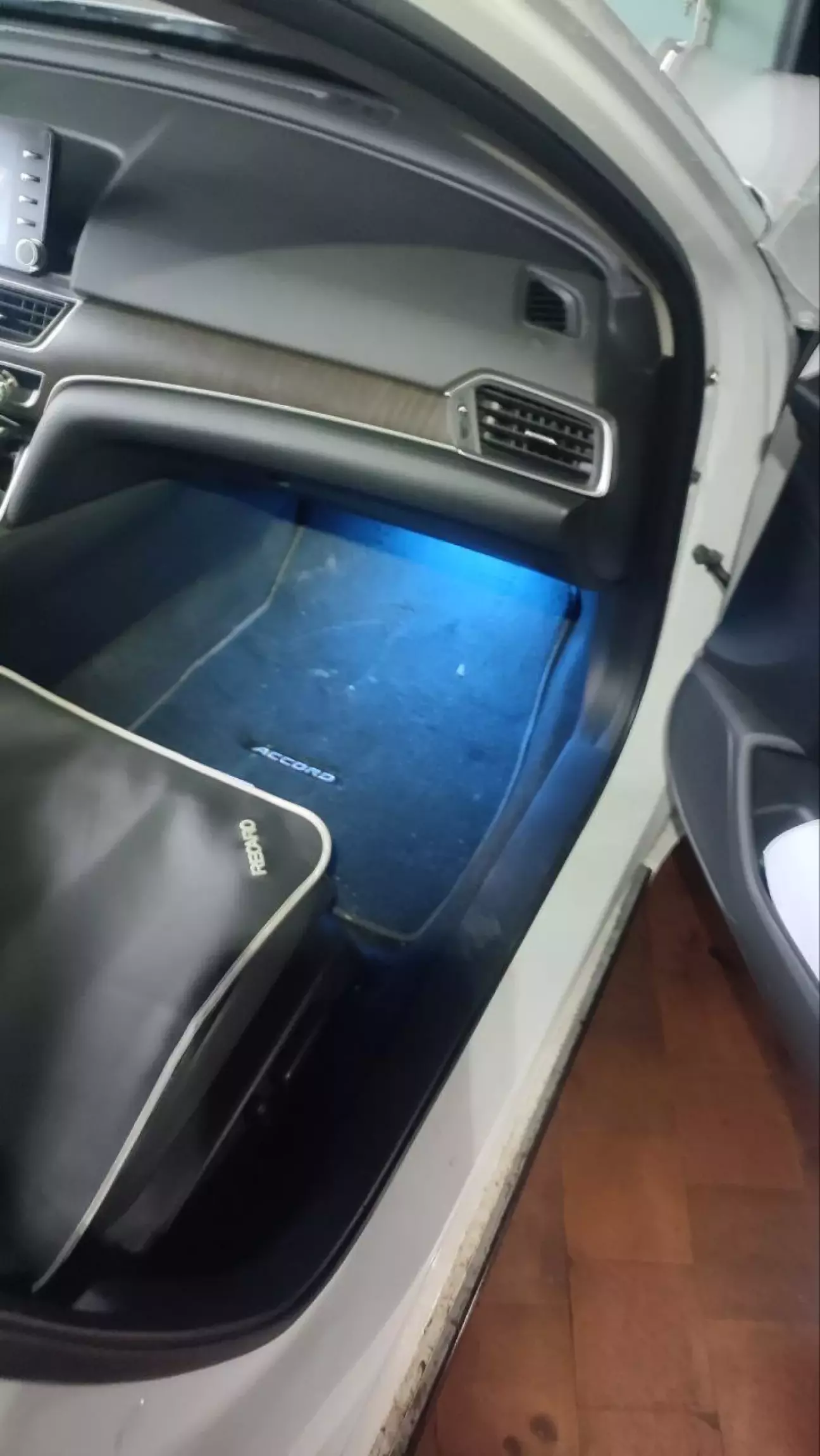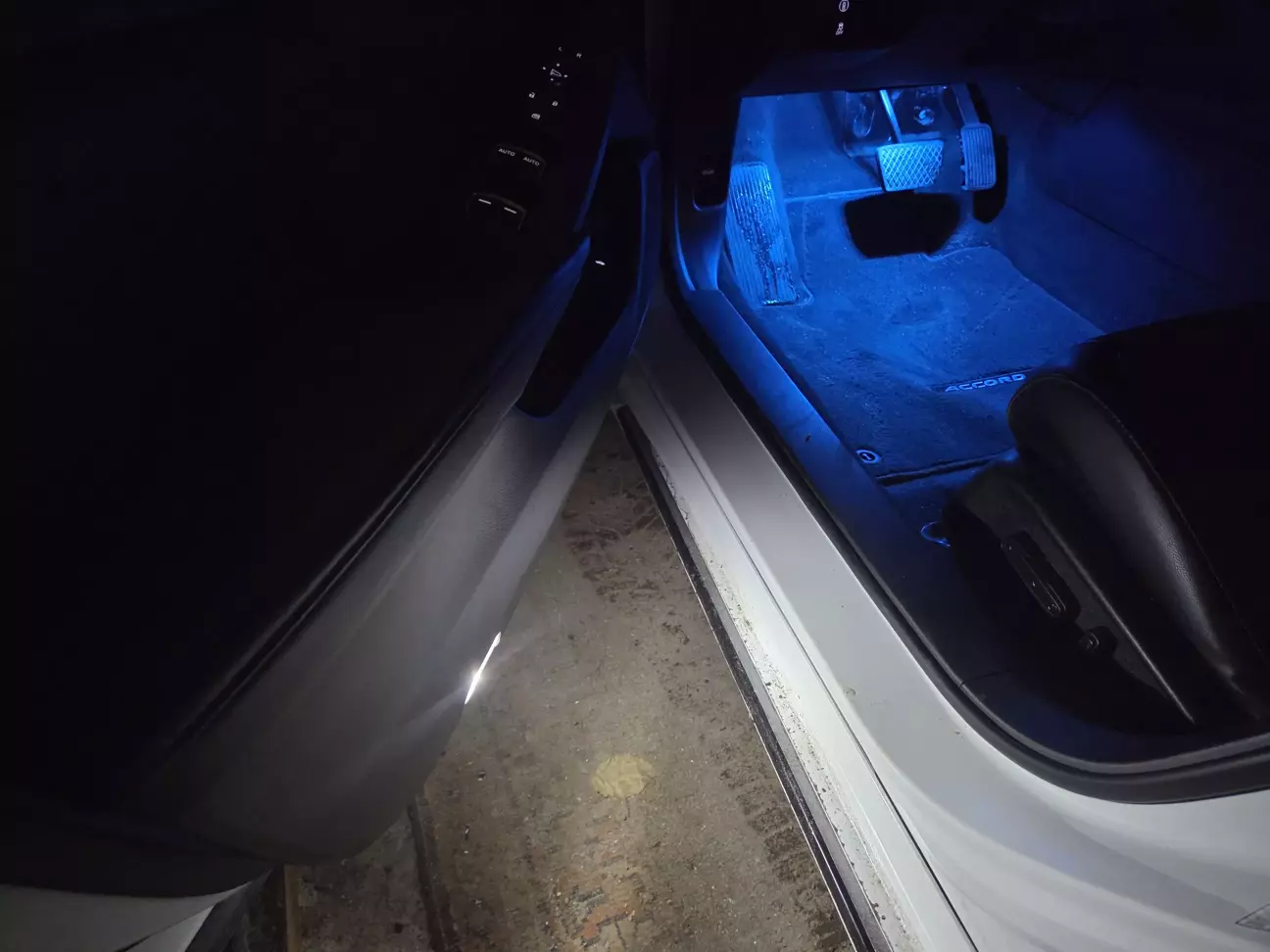 Також замовив з Аліхи сині лампи освітлення ніг бо не було такої опції в машині ,а у Аккорді 8 це було завод.Встановив поки їх, світять добре, але не в штатні місця ідуть а просто клеяться(може коли знайду OEM то зміню бо без зайвих ререробок та дюрок встановив).Всім гарного дня.Фото додаю.