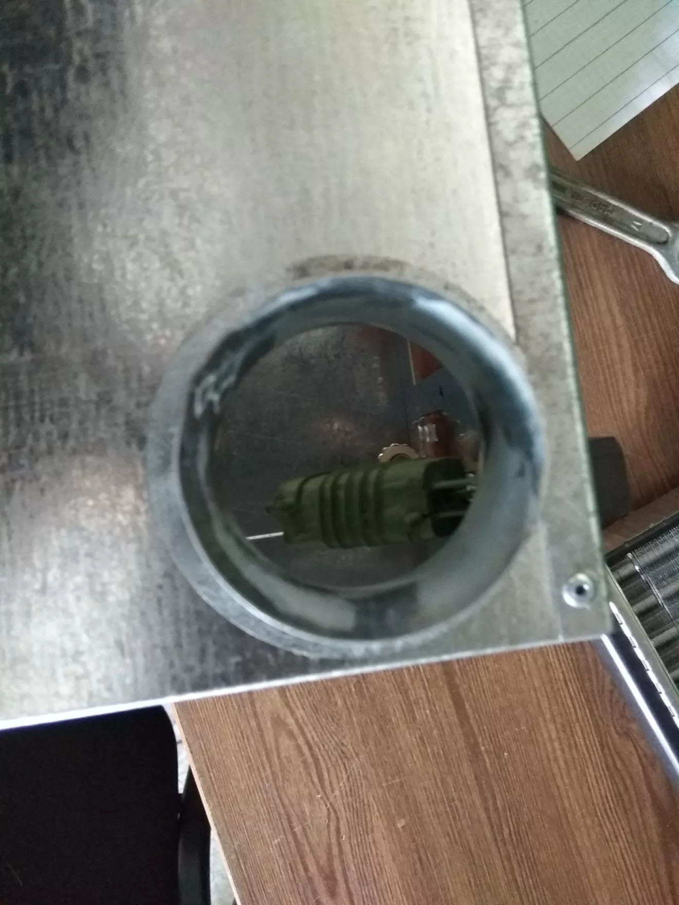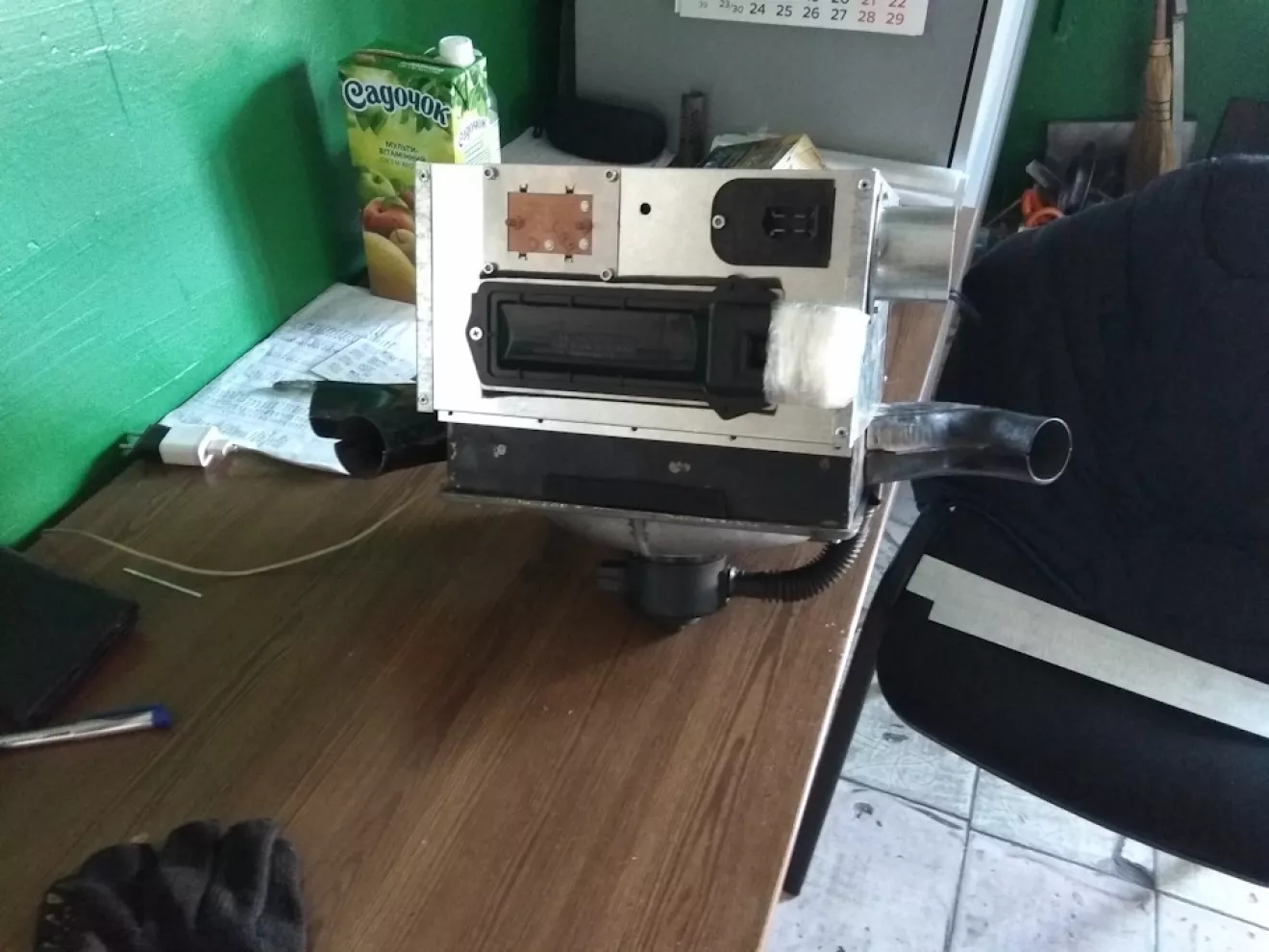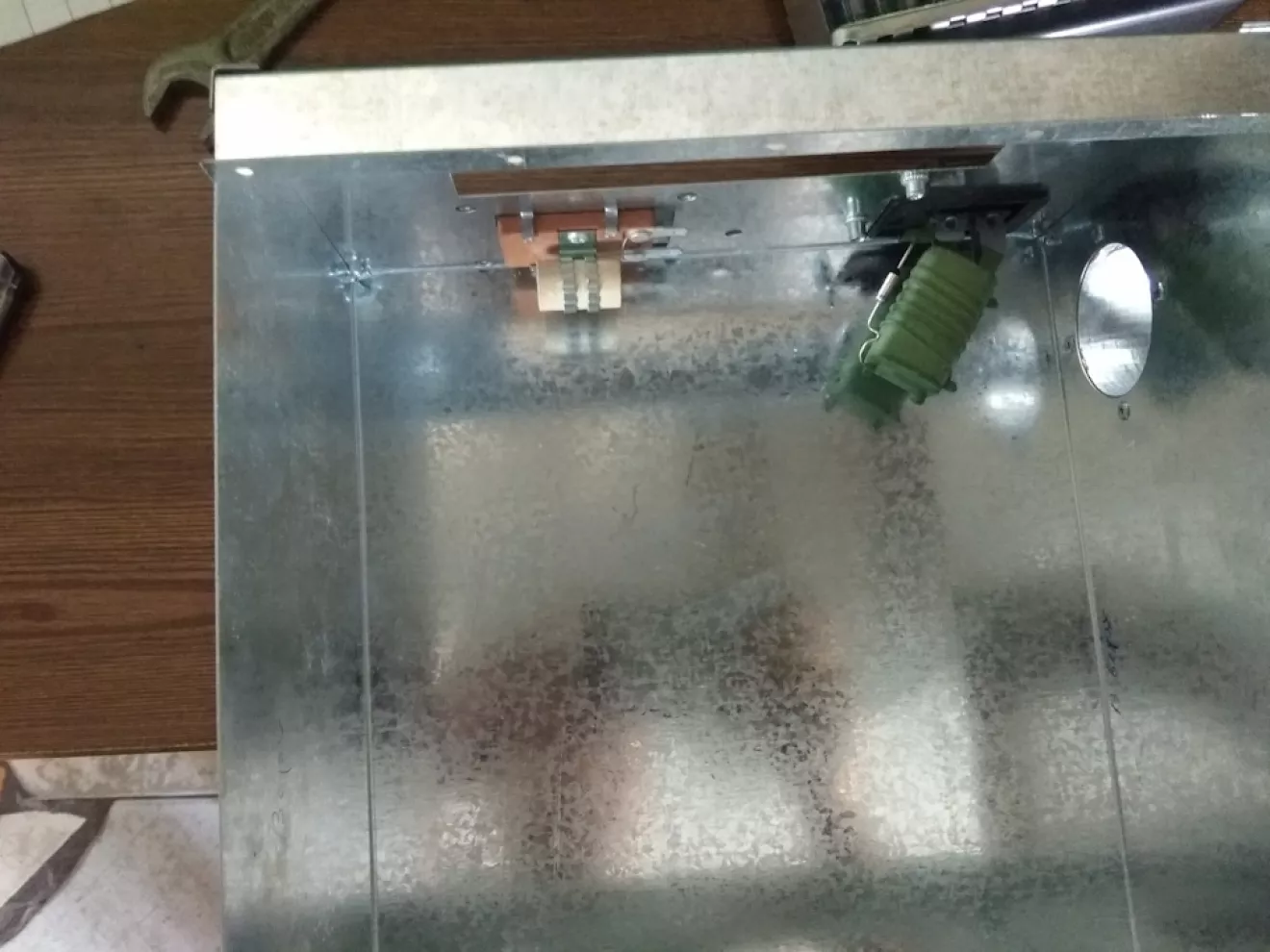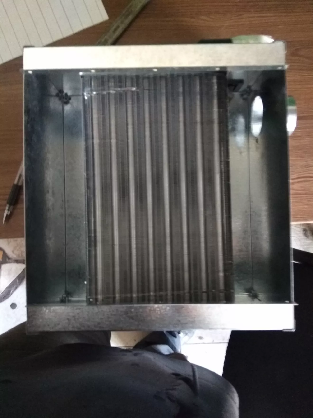 Снял родной радиатор — паян во многих местах, латать латанное желания нет. Пошёл в магазин и купил Таврический. Корпус делал сам (работаю с листовим металом постоянно поэтому с этим проблем нет. Плюс сразу заложил установку сопротивления и регулятора оборотов с Калины
