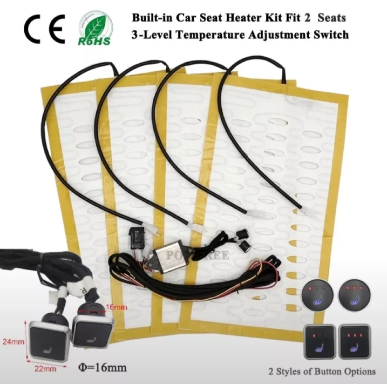 Так как в моей комплектации функция подогрева сидений отсутствует, то решил я её дополнить и сделать под штатные кнопки. На алиэкспресс был заказан комплект подогрева сидений