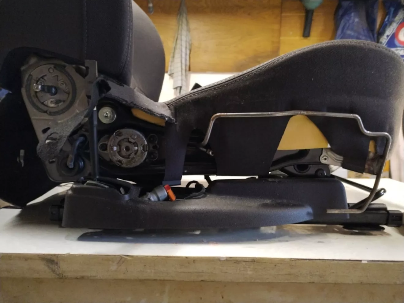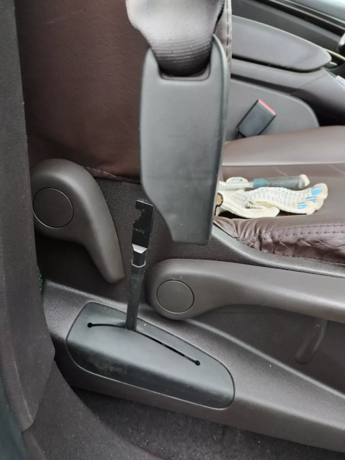 Как оказалось далее с разбором сидений особых сложностей не возникло. Далее я снял рычаги и пластмассовую боковину. Здесь немного для меня было затруднительно, пока не увидел, что сзади есть винт и вся пластмассовая боковина плотно держится на стальном пруте, поэтому я её отщелкнул сразу сзади, а потом как бы толчком подал вперёд.