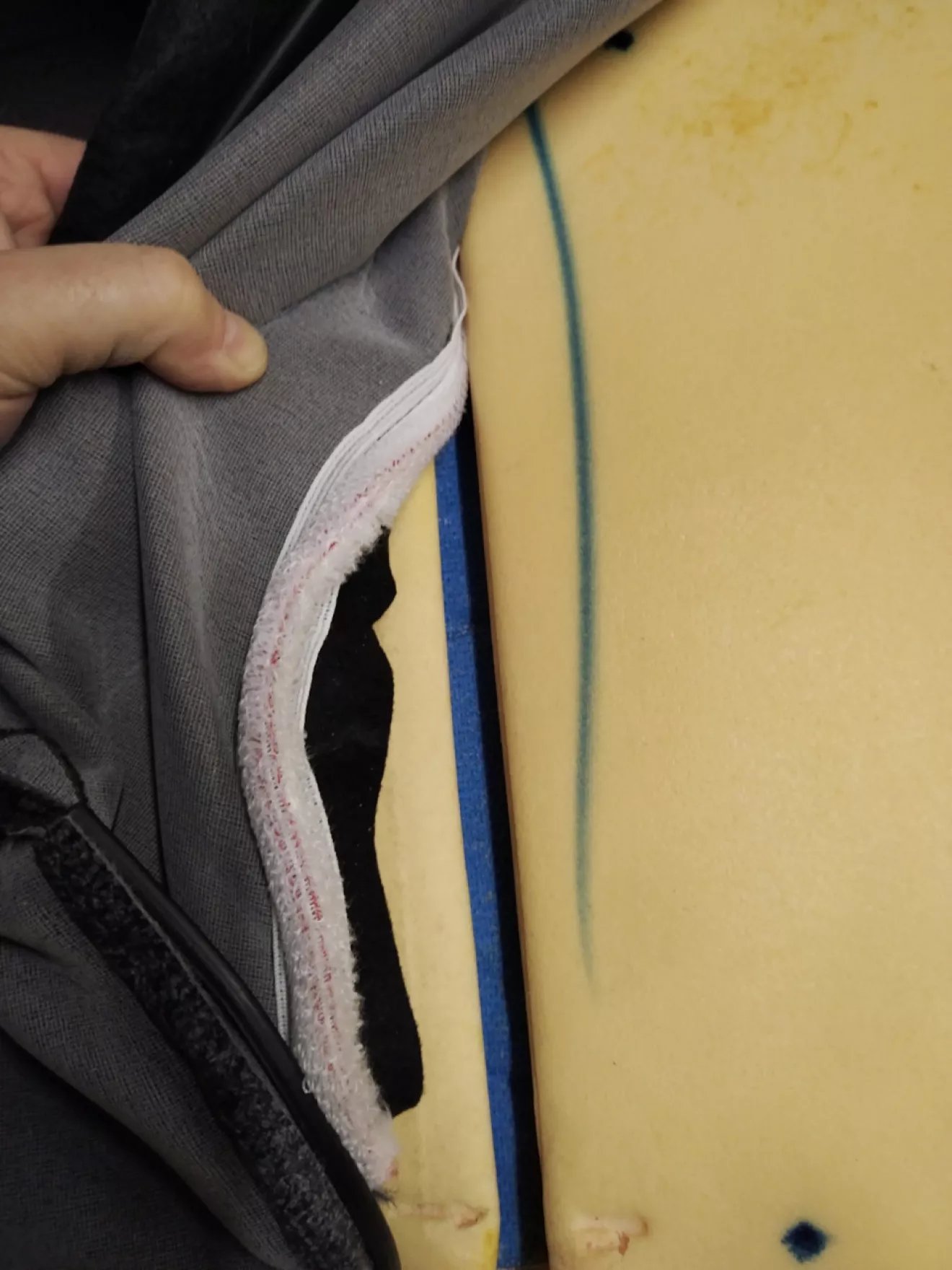 Так же к паралону обивка крепиться на защелках и липучке. Защелки аккуратно подцепливал широкой отвёрткой и обивку подтягивал вверх.