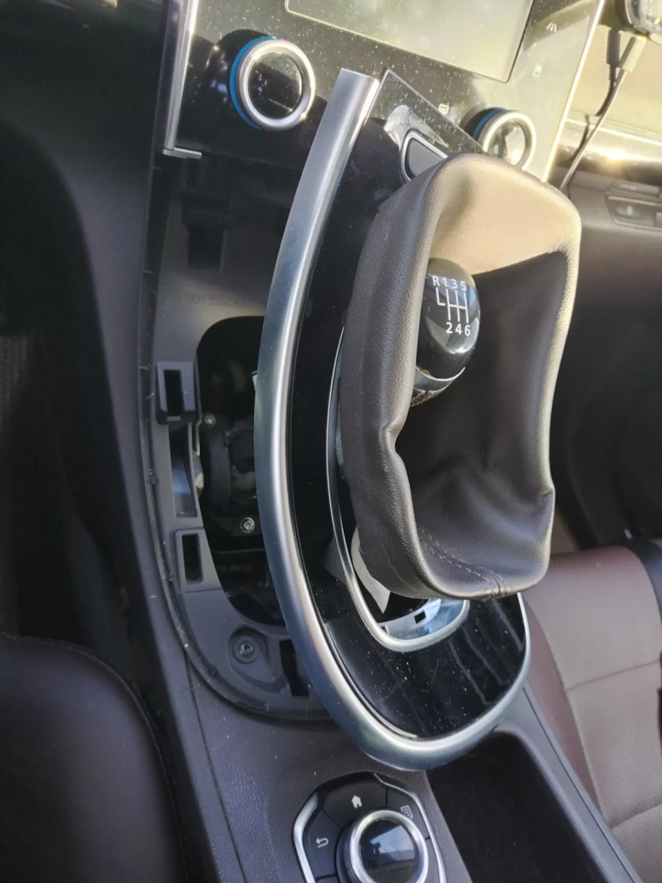 Снимаем сразу кожух ручки кпп. Нужно сжать к центру и потянуть ввех