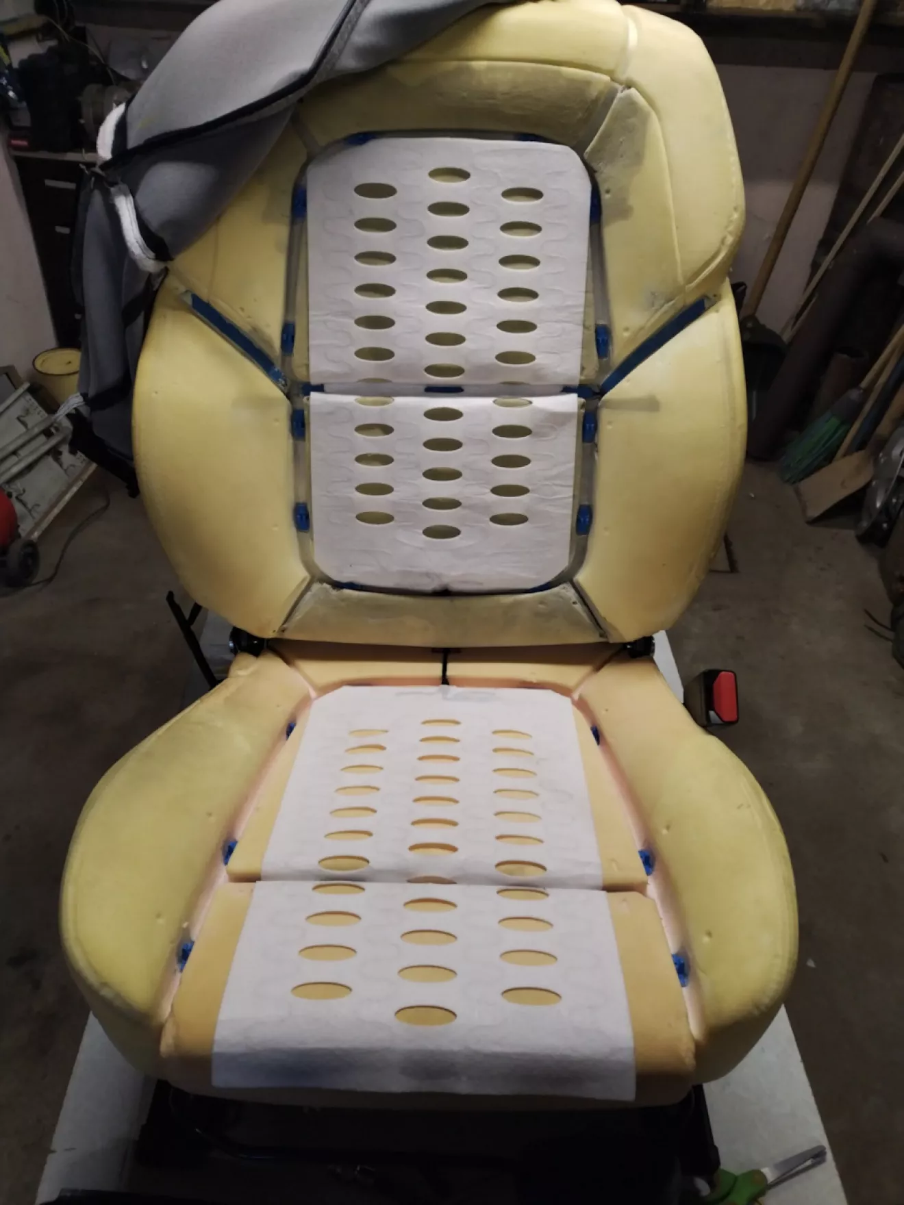 Теперь осталось вставить маты. Сами маты на скотче и очень хорошо приклеиваются к паралону сидений.