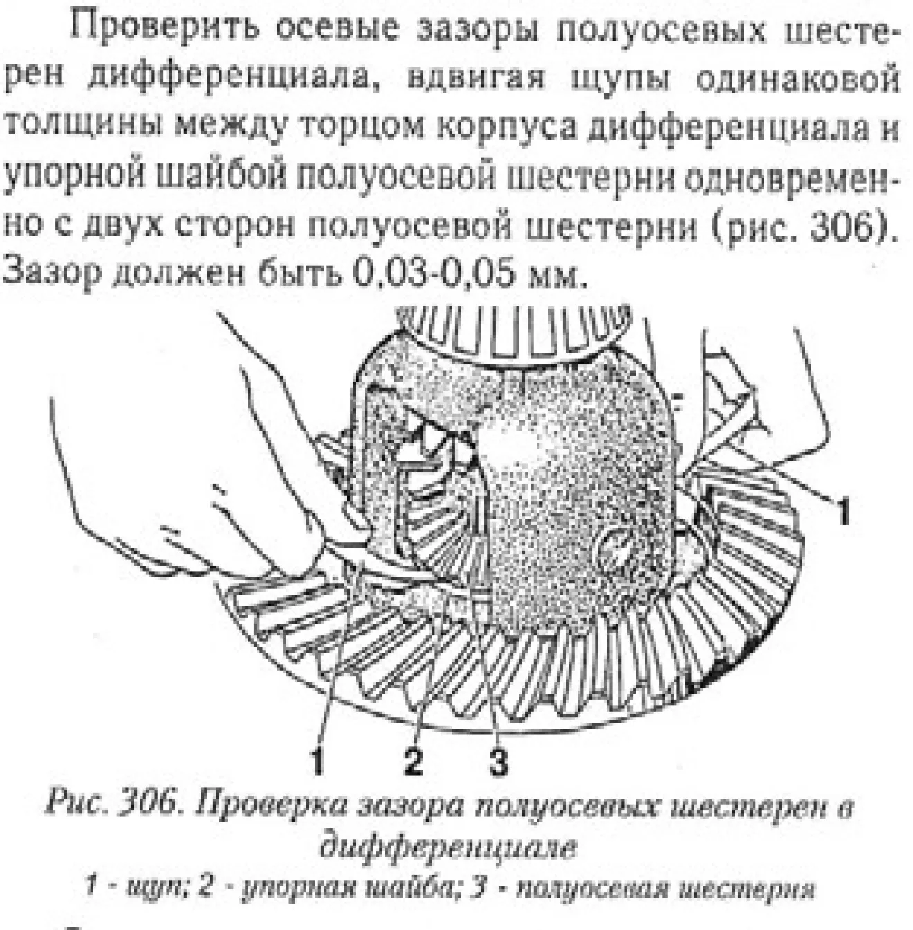 Заодно вынул полуось и проверил зазоры между шестернями ГП и осевого перемещения в дифференциале. Спасибо съемнику, одна полуось без него не выходит.