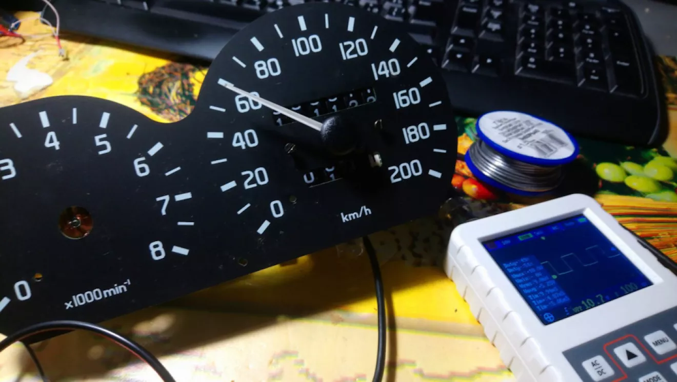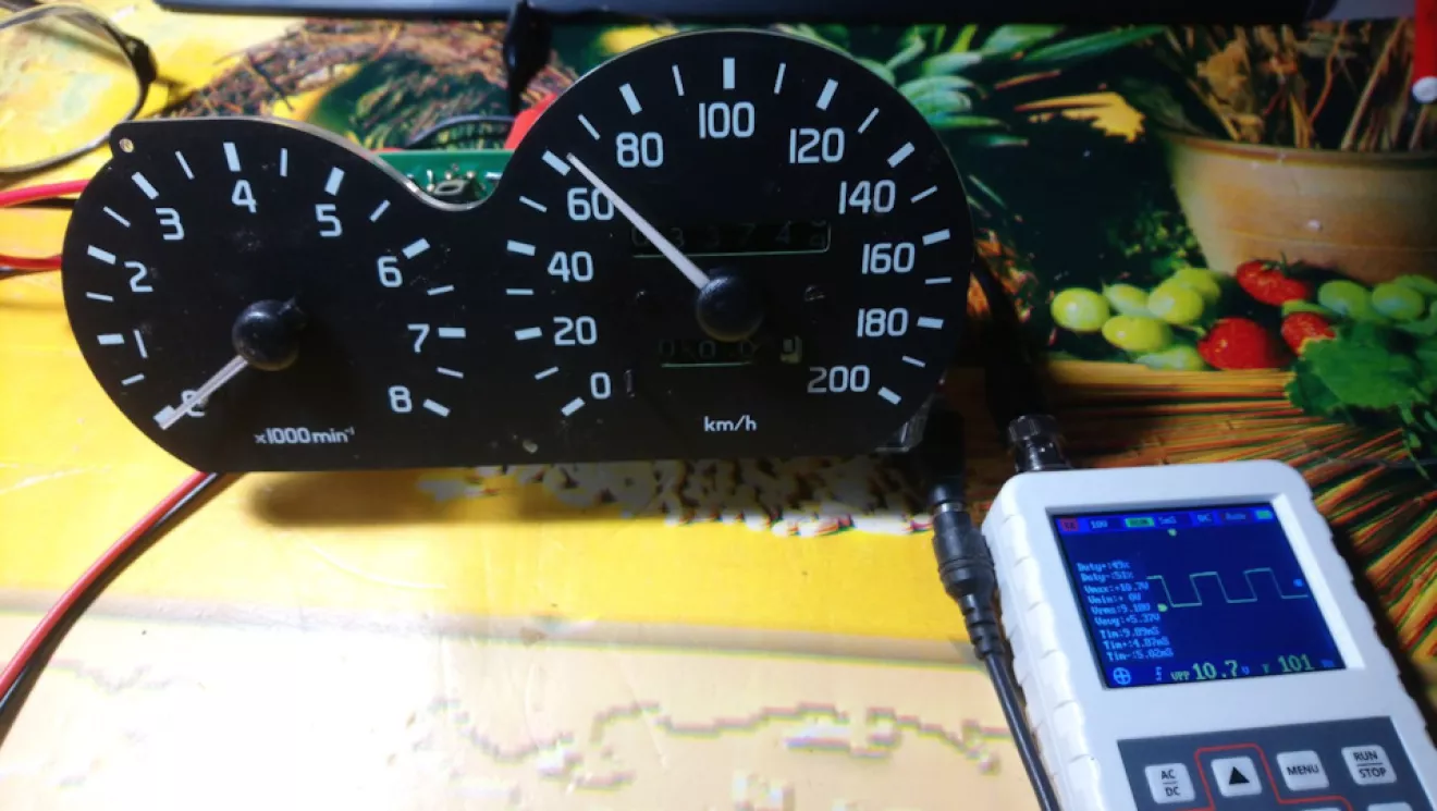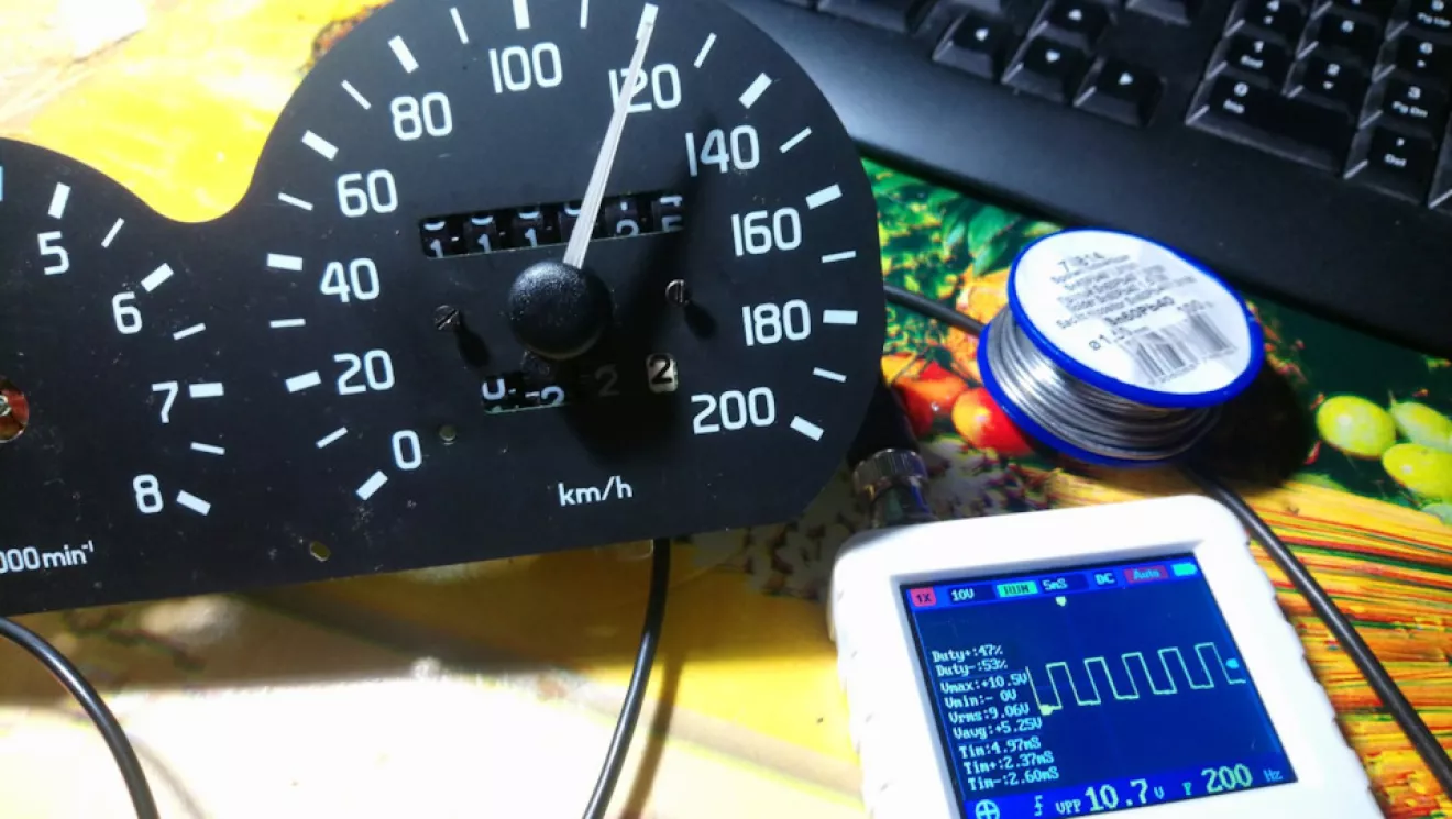 Используя известное соотношение, что скорости в 60 км/ч соответствует частота 100 Гц, а на 120 км- 200 Гц, то после подачи сигнала на вход, калибровка заключается в снятии стрелки и установки её на желаемое значение. Учитывая тот факт, что в качестве головки в схеме используется логометр, то никаких дополнительных регулировок здесь нет, т.е. на показания влияет только частота импульсов.